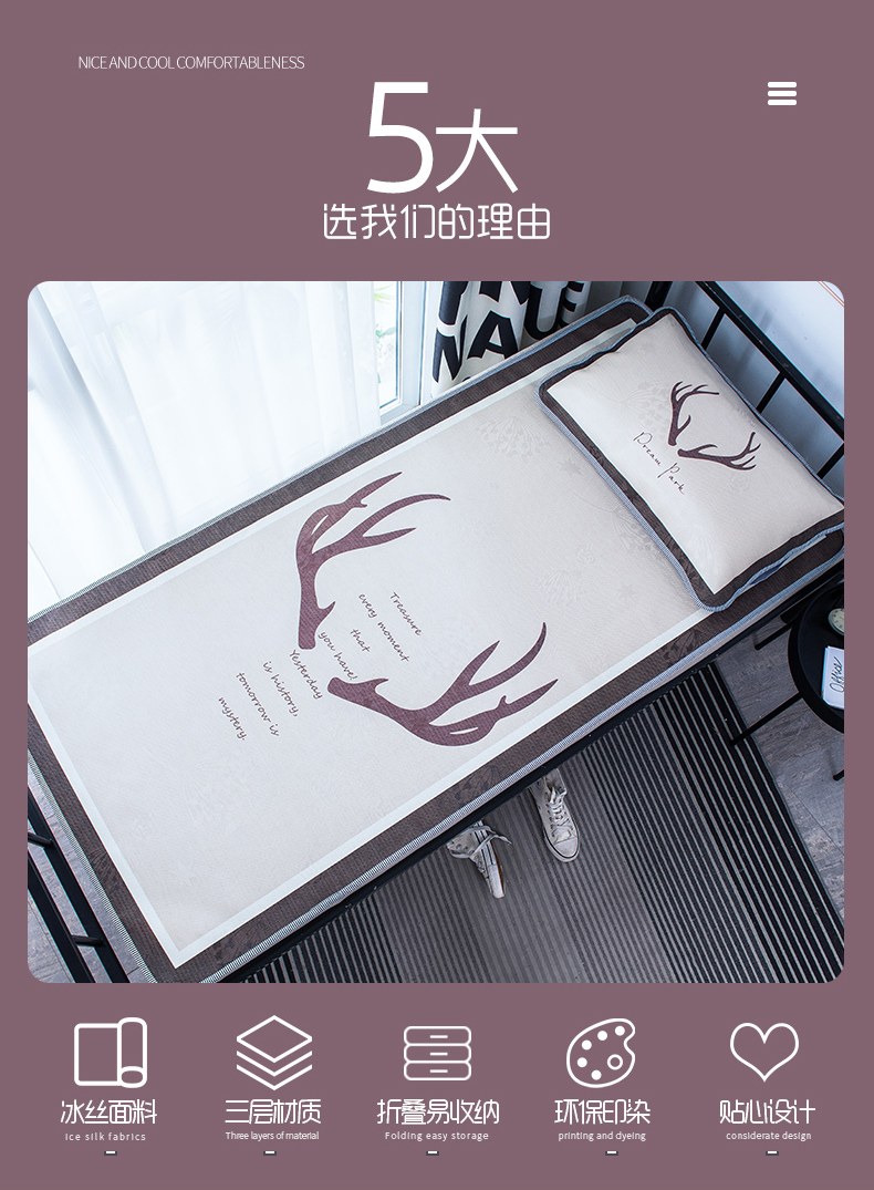 商品名称:宅部落 2025新款学生冰丝席单人宿舍席子凉席 北欧物语