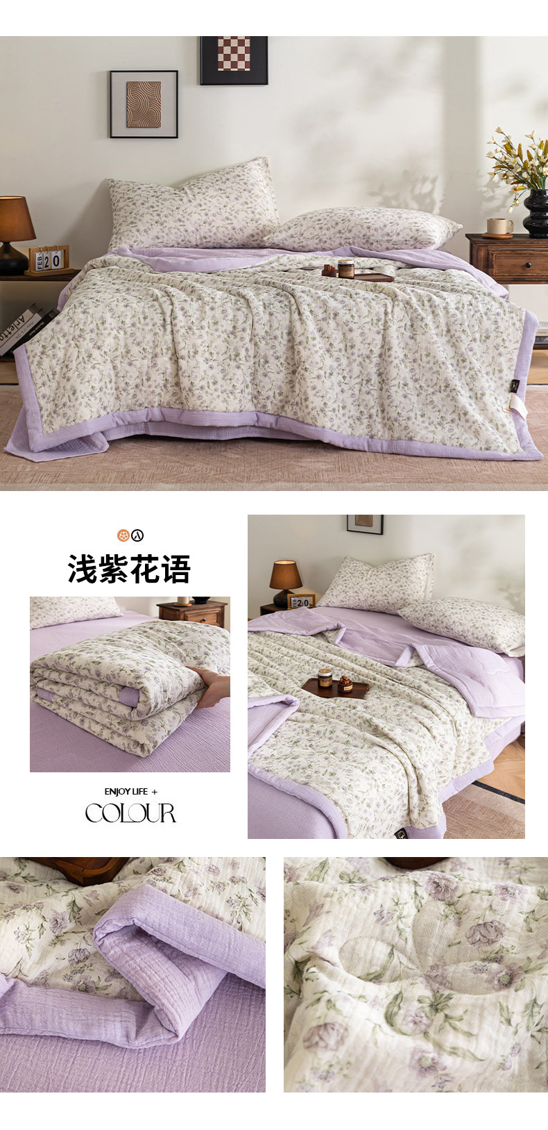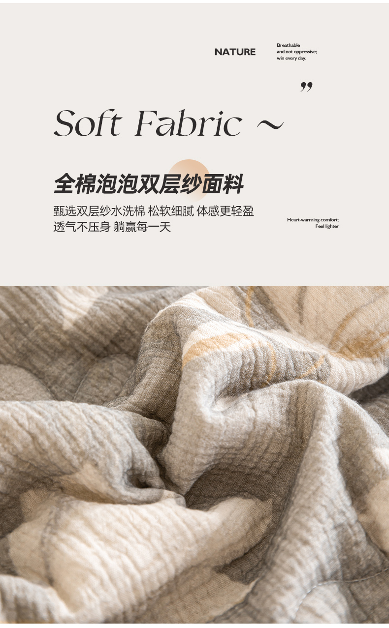 (总)吾诺家居 2026新款全棉色织提花三层纱夏被夏凉被空调被-华美,波点-灰,芳菲-咖,花影-绿,简森-灰,恋恋花开,萌宝,梦幻花园-粉,梦幻花园-灰,太阳花,藤叶-咖,香水繁花-绿