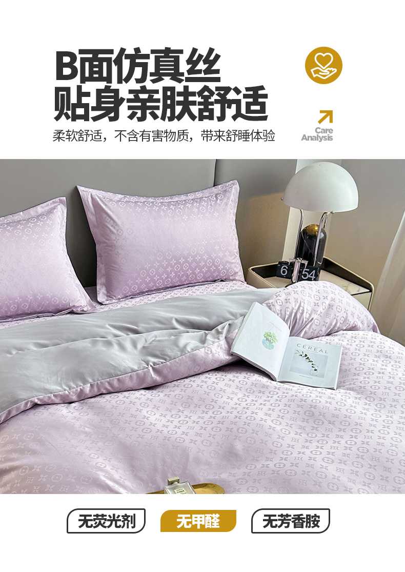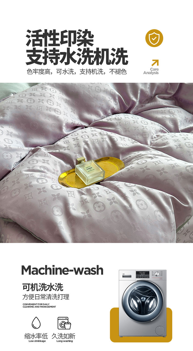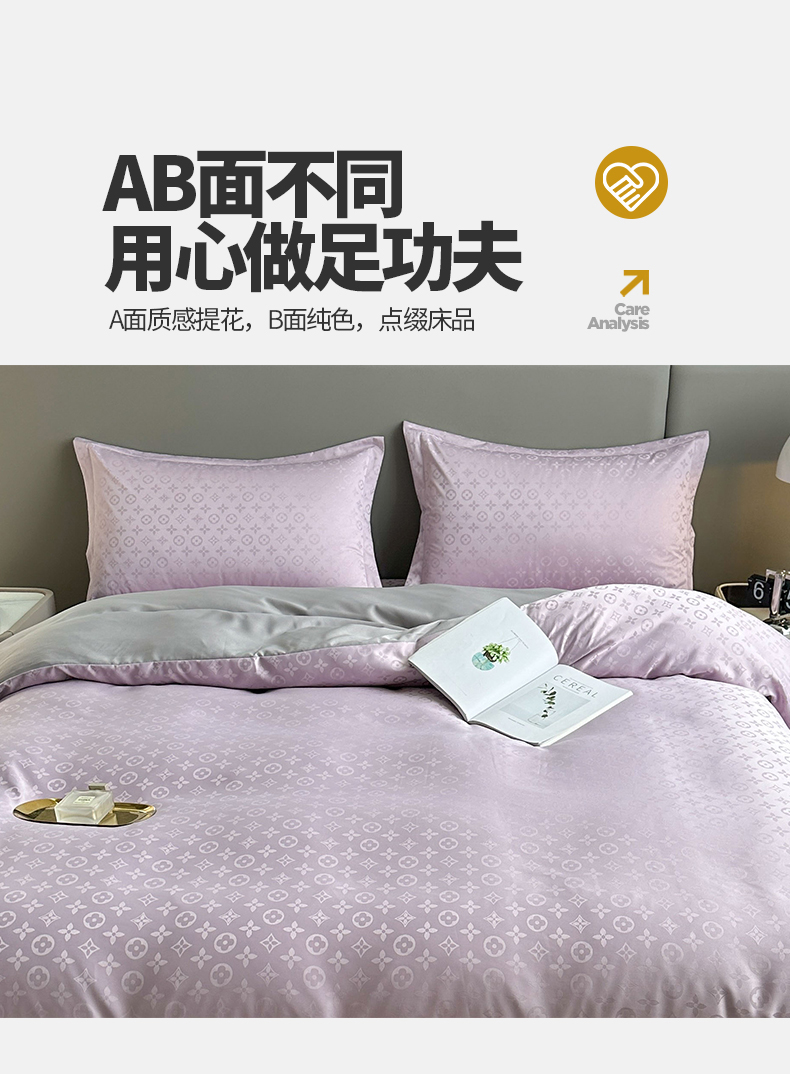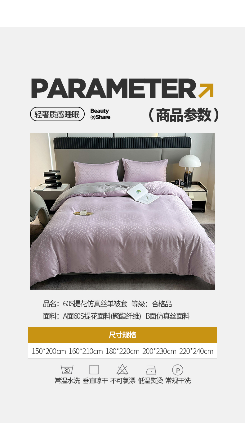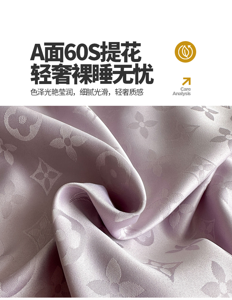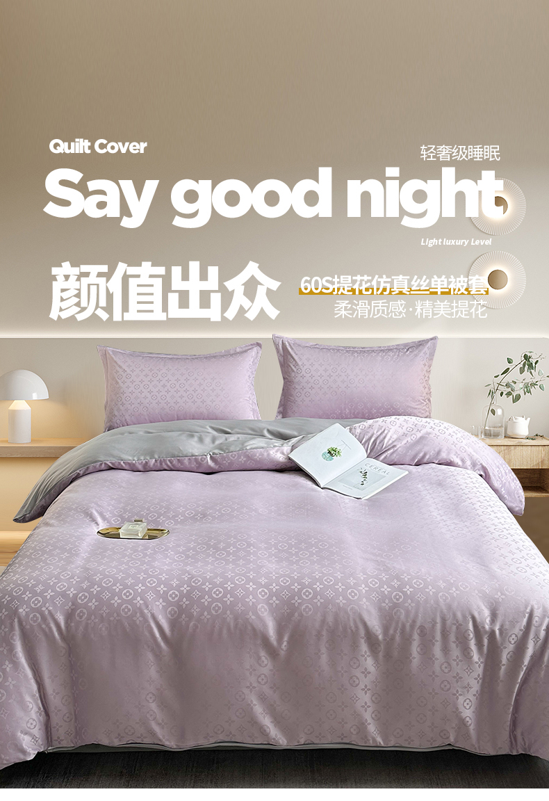 商品名称:云玲时尚 2025新款大牌风60S提花纯色轻奢贡缎水洗真丝单品被套 烟灰紫