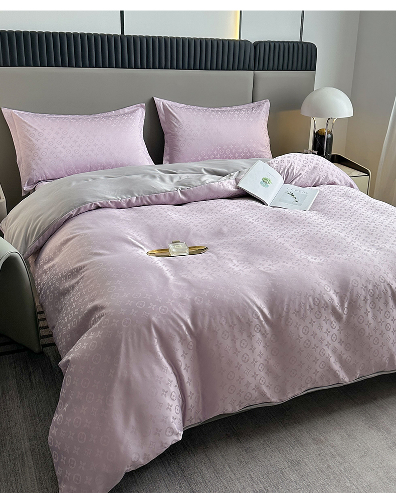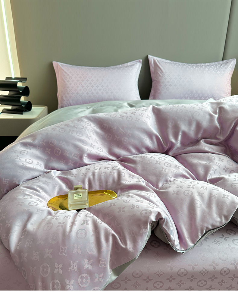 云玲时尚 2025新款大牌风60S提花纯色轻奢贡缎水洗真丝单品被套 烟灰紫