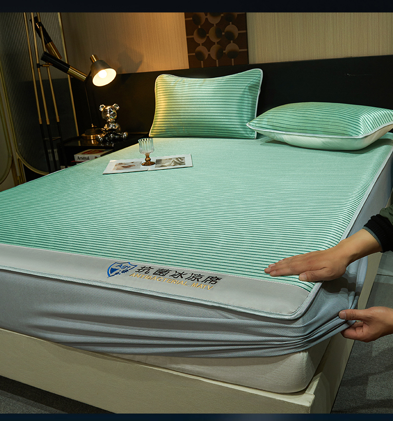 (总)小萌虎 2025新款冰豆豆凉席 床笠款,粉玉,果绿,灰色,咖色,浅蓝,深蓝