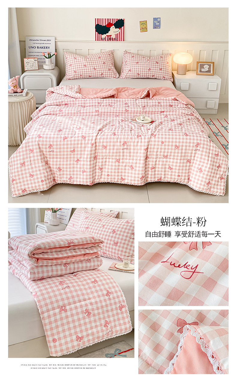 商品名称:佰亿莱 2025春夏新款水洗棉羽丝绒小花边夏被夏凉被空调被 蝴蝶结-粉