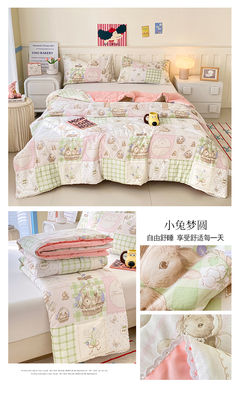商品名称:佰亿莱 2025春夏新款水洗棉羽丝绒小花边夏被夏凉被空调被 小兔梦圆
