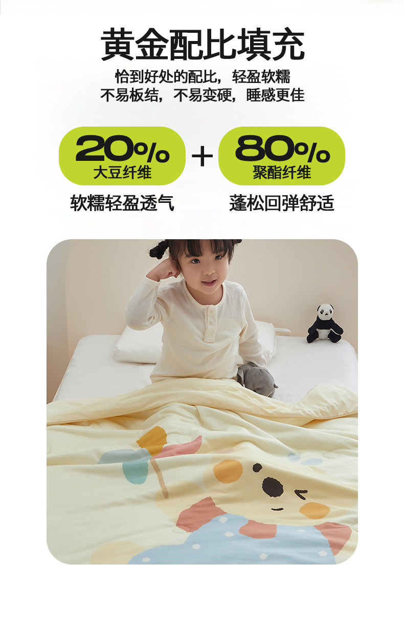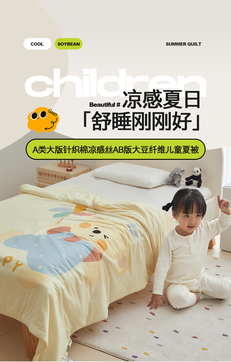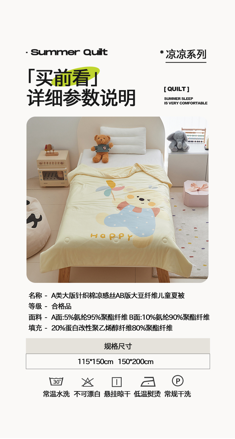 商品名称:荷马之梦 2025新款大版针织棉凉感丝AB版大豆儿童夏被 风车小熊
