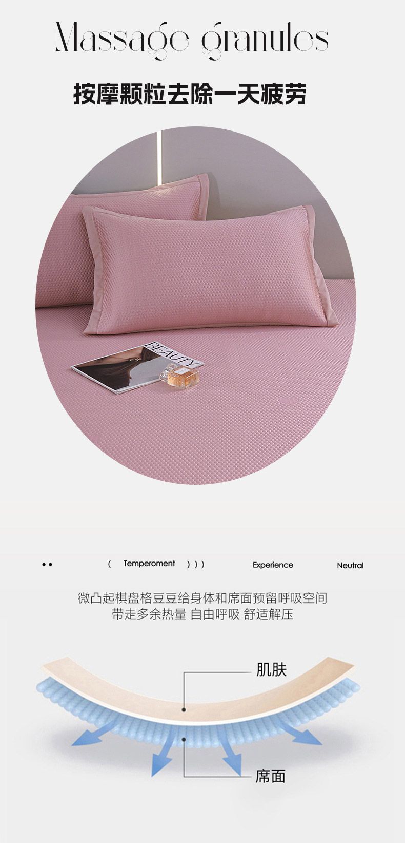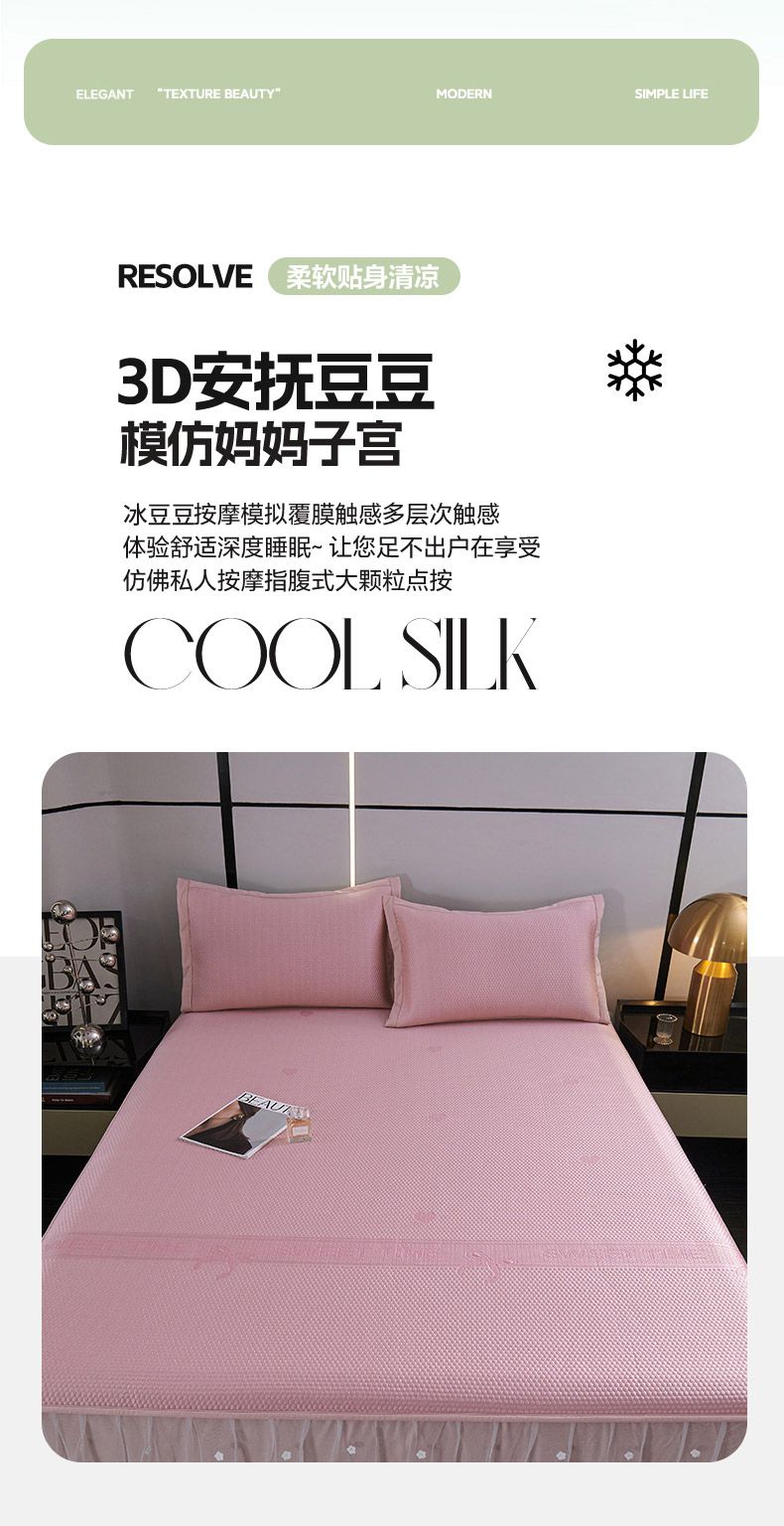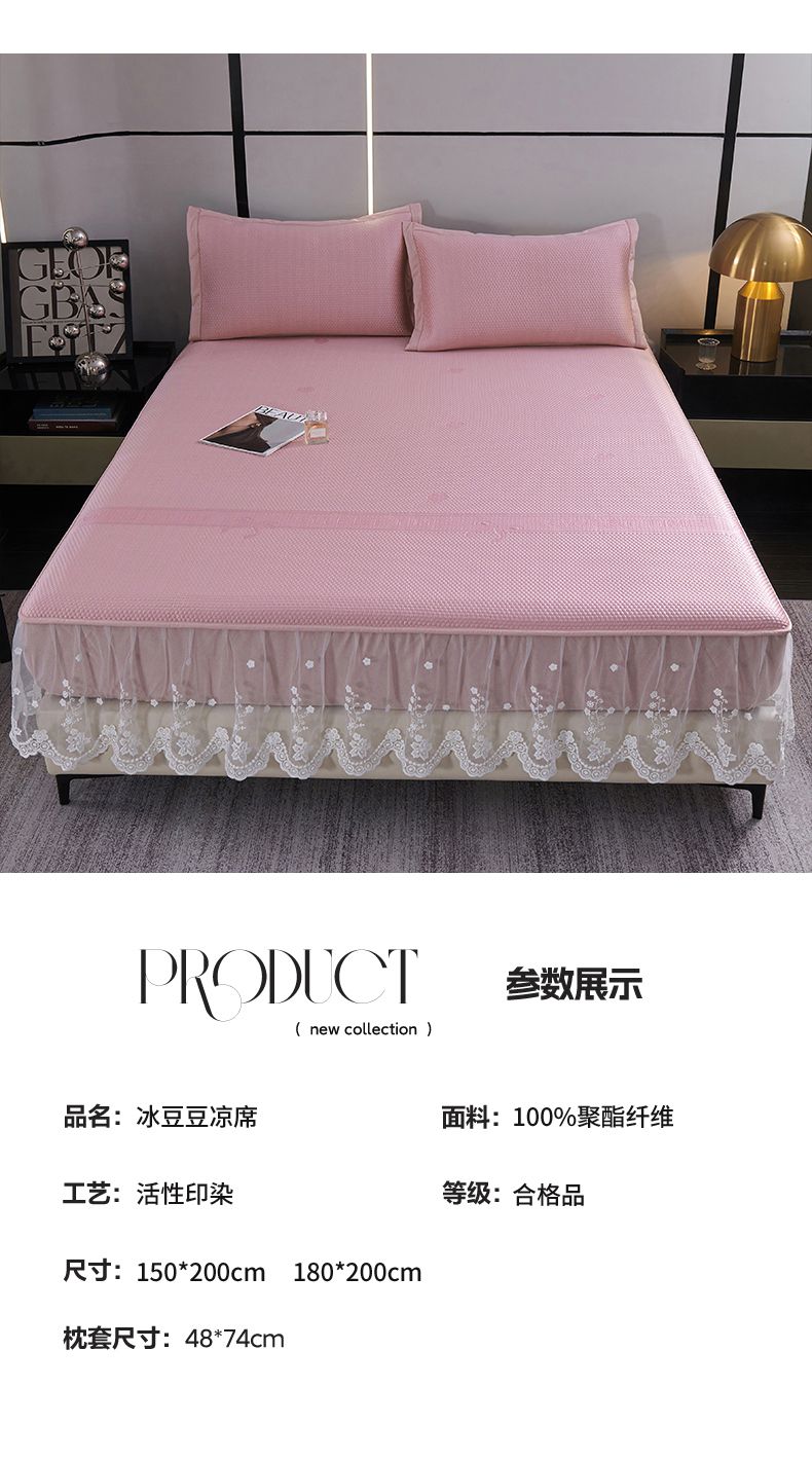 梵克保罗 2025新款7A抗菌母婴级纯乙纶PE刺绣凉感丝豆豆席 床笠花边款 花边床笠爱心蝴蝶结-蓝