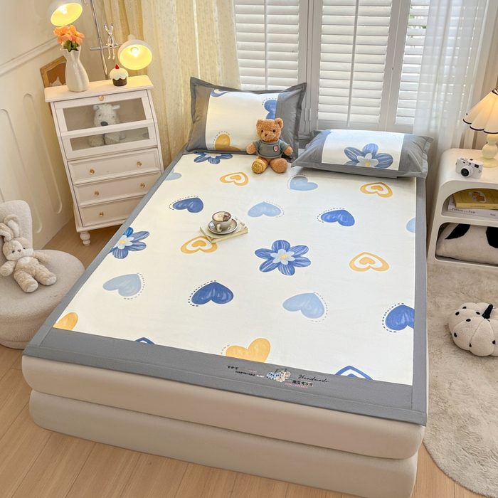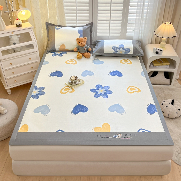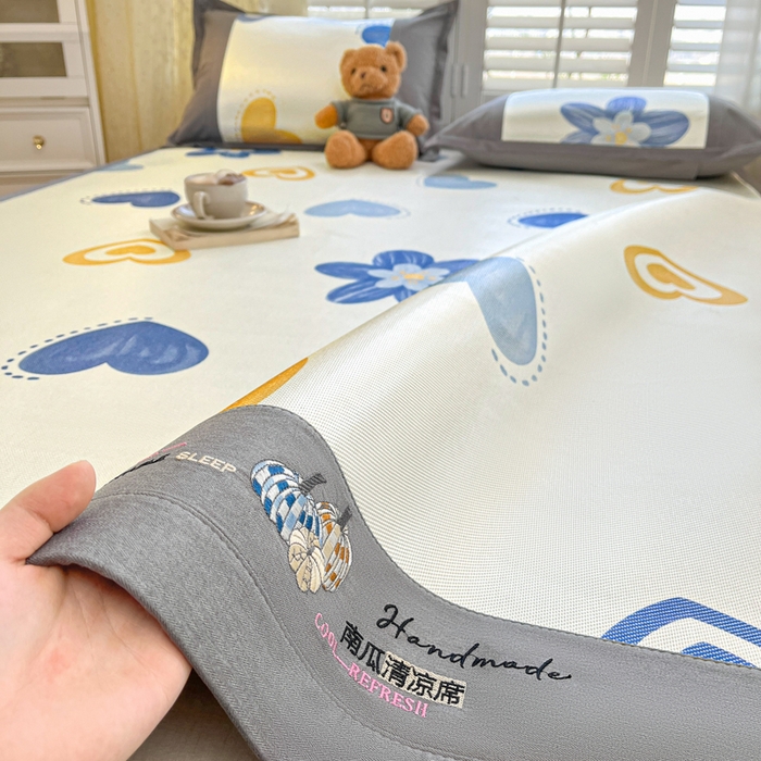(总)2025新款印花冰藤凉席-学生款,杯具熊,冰块蓝,粉熊猫,可哒鸭,萝卜兔,太空人,小兰花,小企鹅
