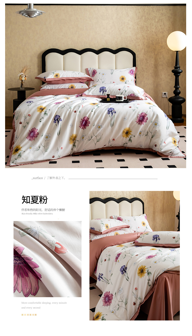 金奇达2025新款【曼妙庄园】-轻氧水光天丝棉四件套(标准号全网控价(折后券后)不低于268) 知夏粉