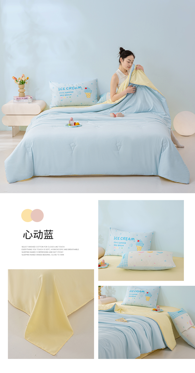 商品名称:康纳利 2025新款冰淇淋凉感夏被四件套 心动蓝