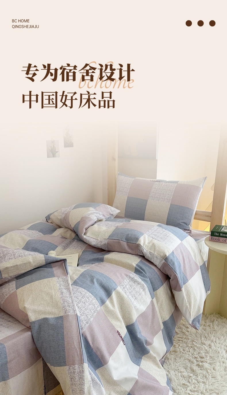 商品名称:拔萃 2025新款全棉纯棉足标13372印花学生上下铺套件纯棉宿舍三件套六件套 米格兰