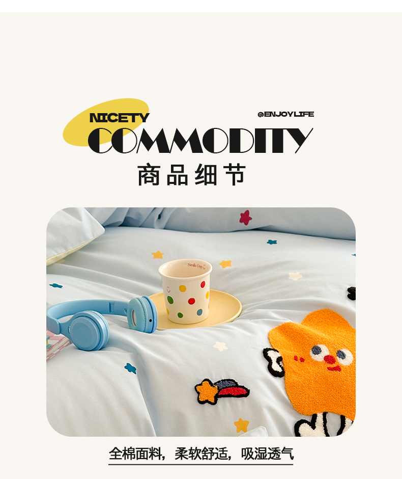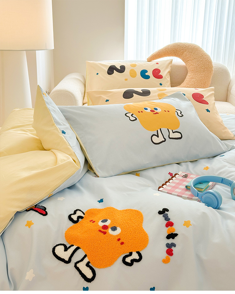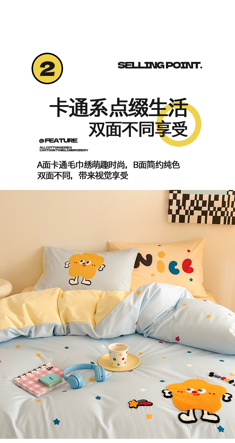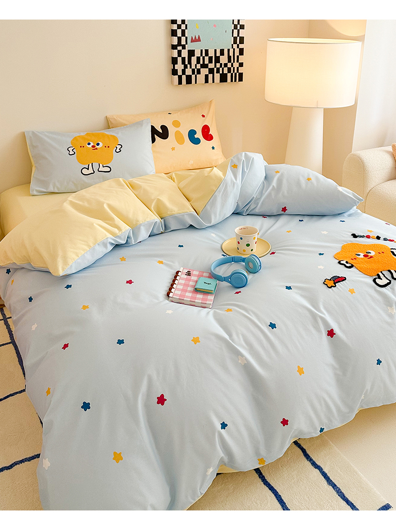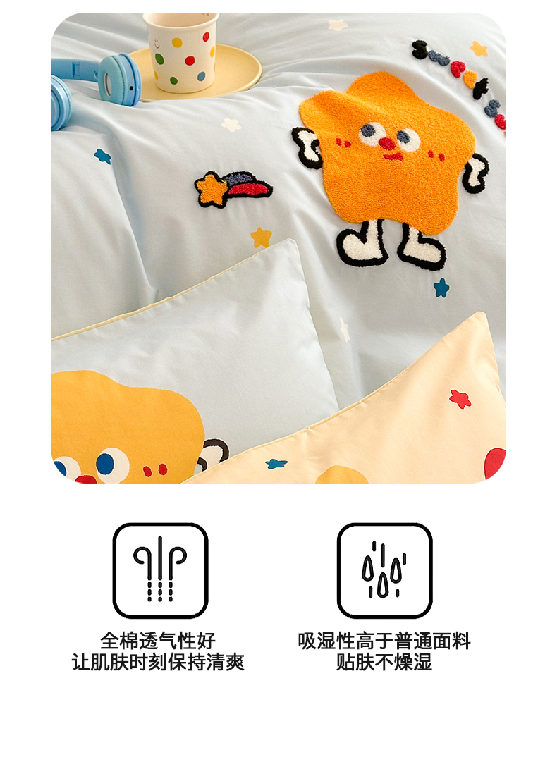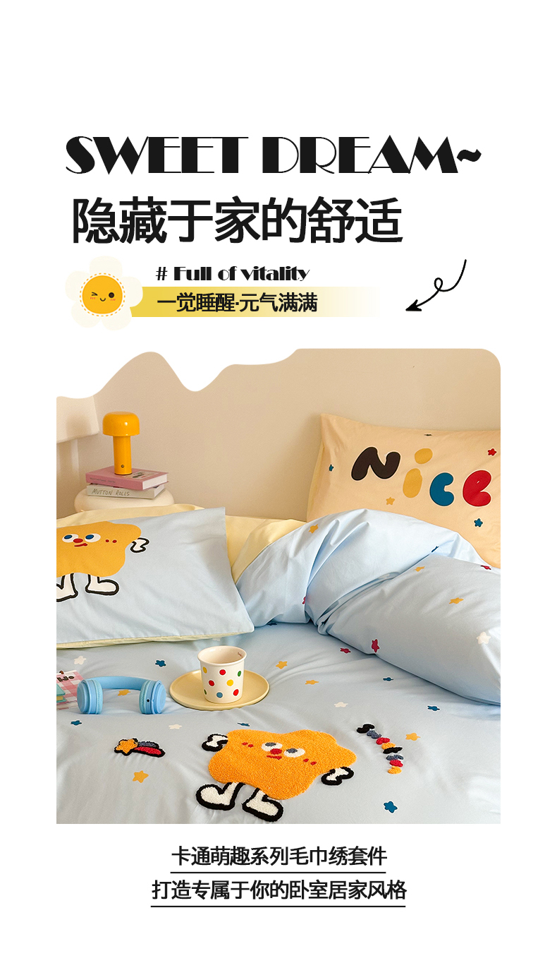 花言狐语 2025新款13372全棉印花毛巾绣四件套(提供买家秀) 彩虹星星