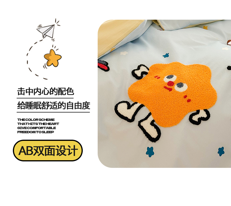 商品名称:花言狐语 2025新款13372全棉印花毛巾绣四件套(提供买家秀) 彩虹星星