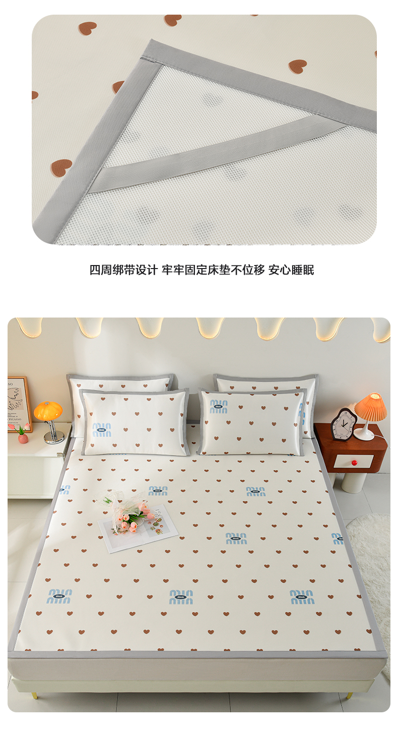 简一 2025新款A类碳光印花数码冰丝凉席系列-床笠款 满心欢喜