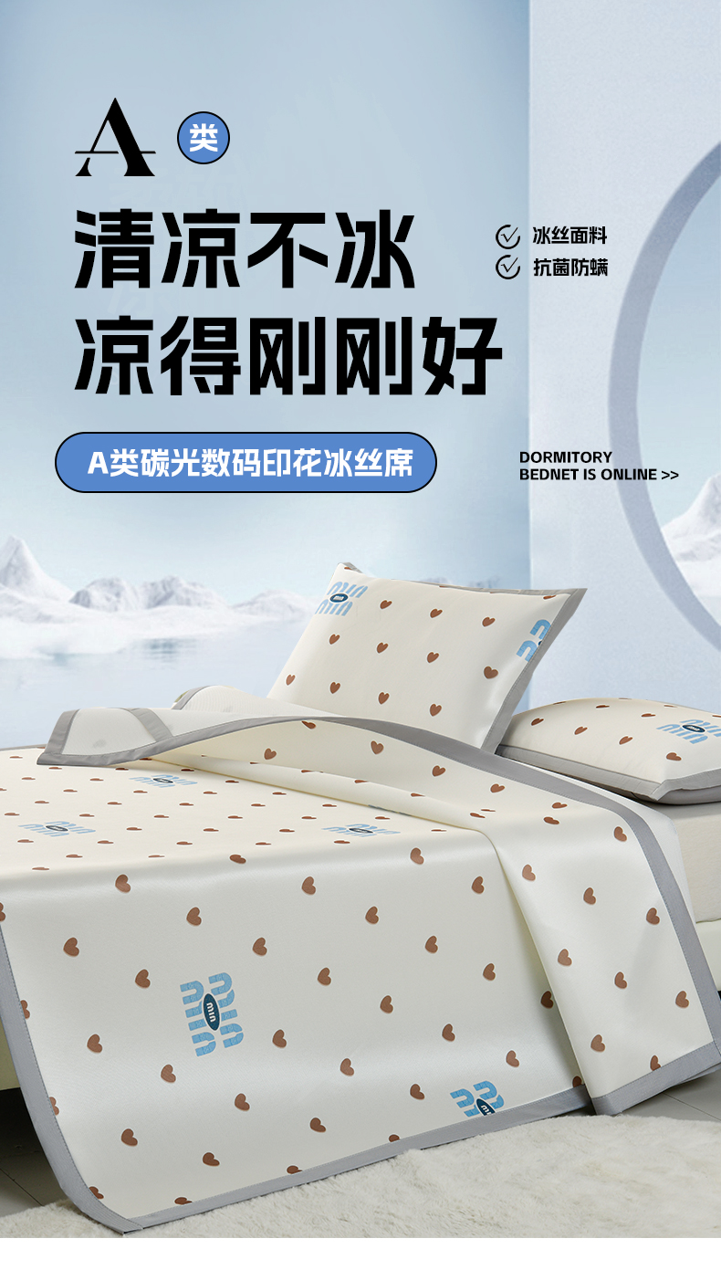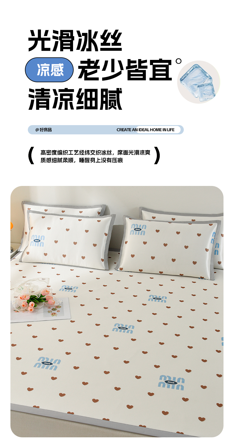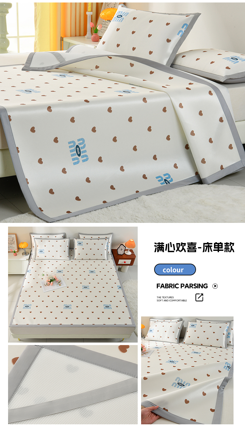 商品名称:简一 2025新款A类碳光印花数码冰丝凉席系列-床笠款 满心欢喜
