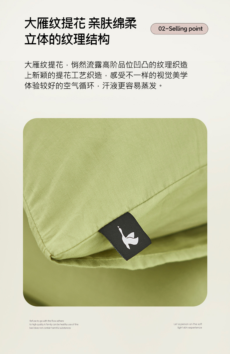 商品名称:风向标家纺 2025新款A类40S全棉糯感大雁纹提花单品枕套 甘草绿