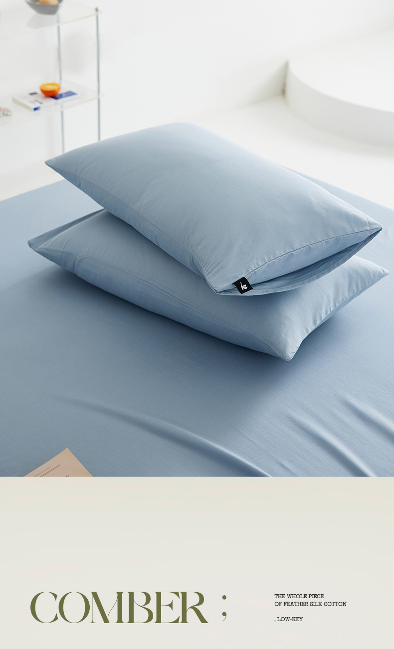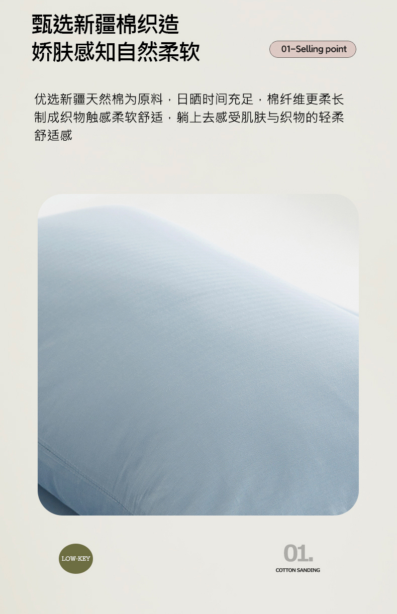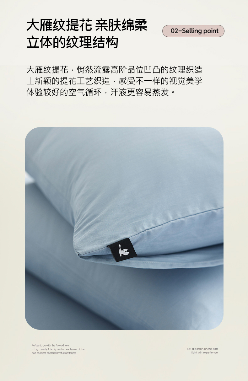商品名称:风向标家纺 2025新款A类40S全棉糯感大雁纹提花单品枕套 浅蓝