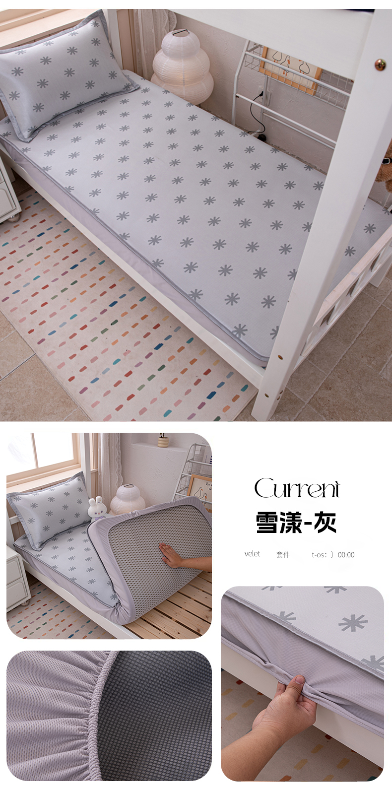 商品名称:凌云家纺 2025新款提花凉感冰丝席床笠款三明治凉席三件套 雪漾-灰