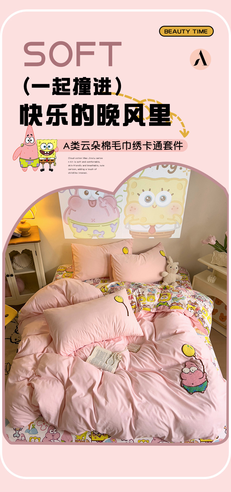 (总)云木里 2025新款云朵棉毛巾绣印花四件套,Kt的花园,大眼萌兔,欢乐的卡皮,卡皮巴拉,腊肠狗,奇妙宇航员,甜筒KT,乌萨奇,熊猫乐乐,音乐煤球,樱桃小可爱,宝宝和派派,呆萌卡皮,动物派对,精灵布布,蘑菇兔,奶油小熊,贪睡小象,甜品蛋糕喵,西高地狗狗,小新同学,夏日小新