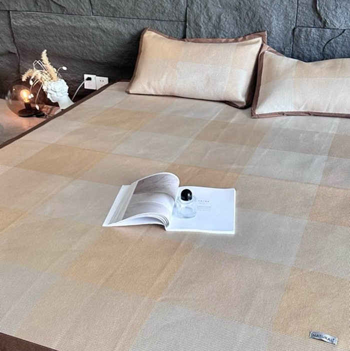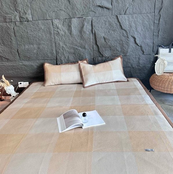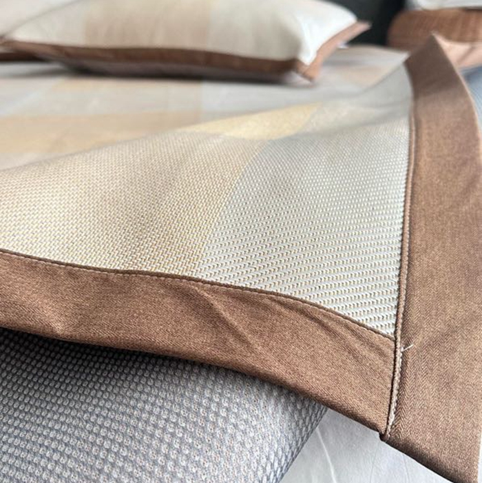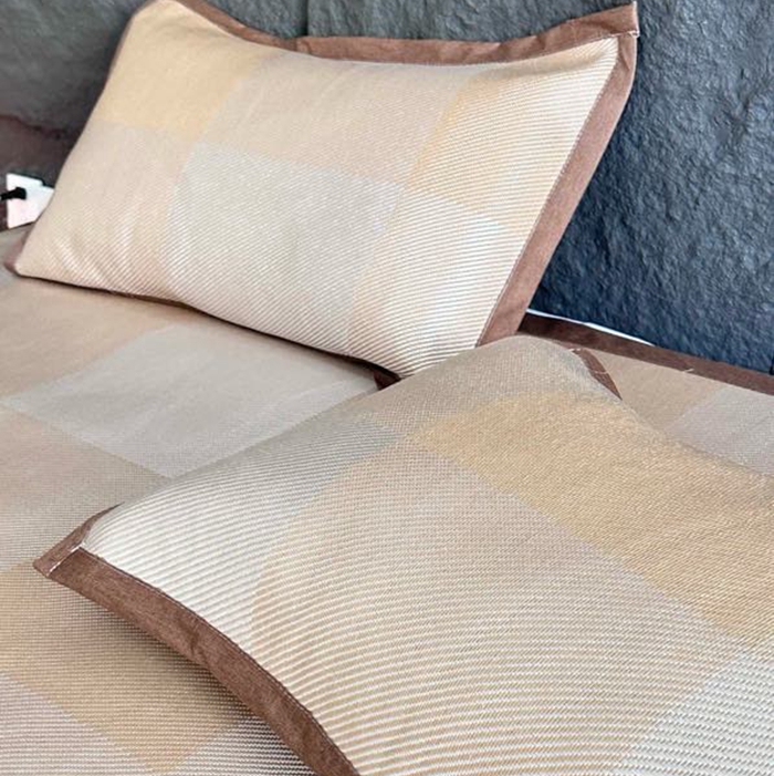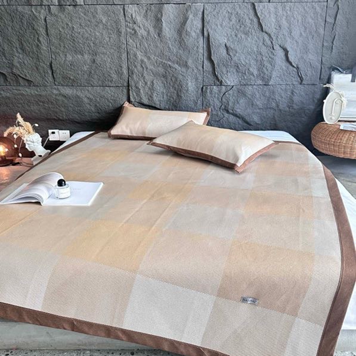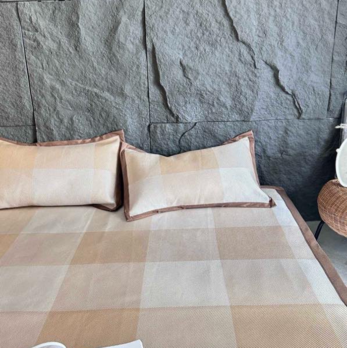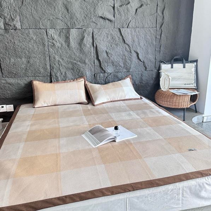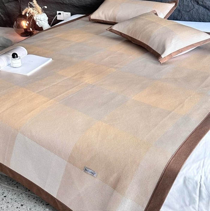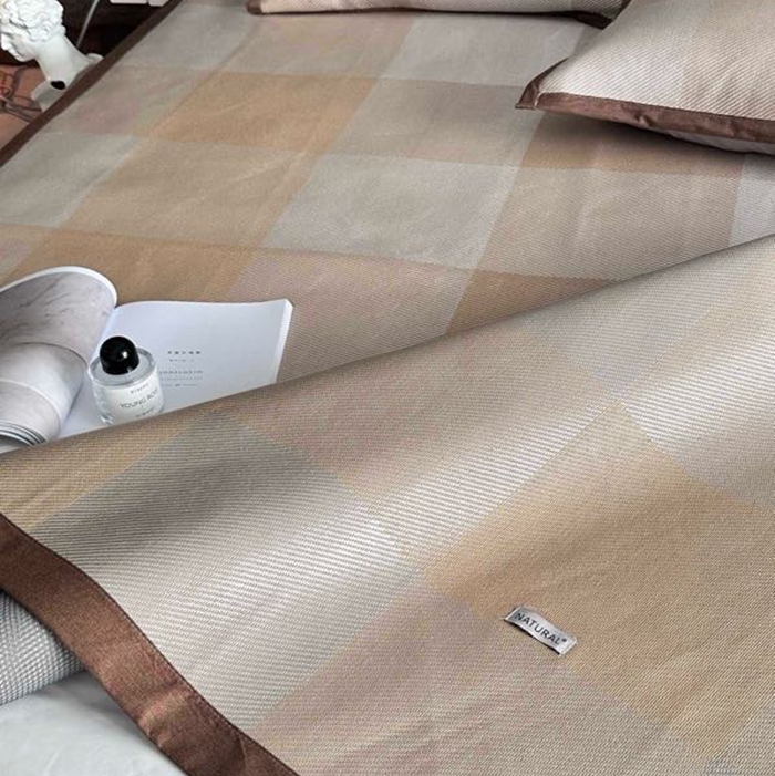 美丽坊 2025新款轻奢三明治冰藤抗菌凉席三件套 绅士咖