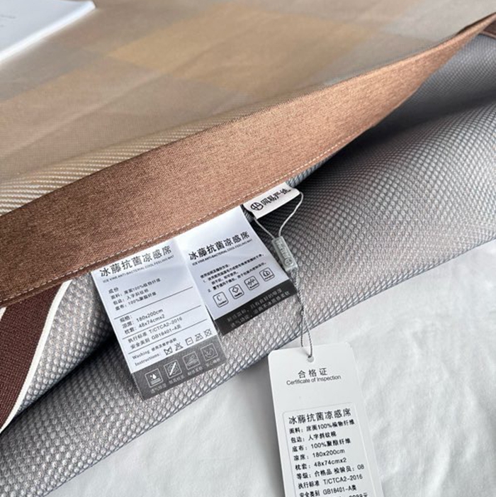 商品名称:美丽坊 2025新款轻奢三明治冰藤抗菌凉席三件套 绅士咖