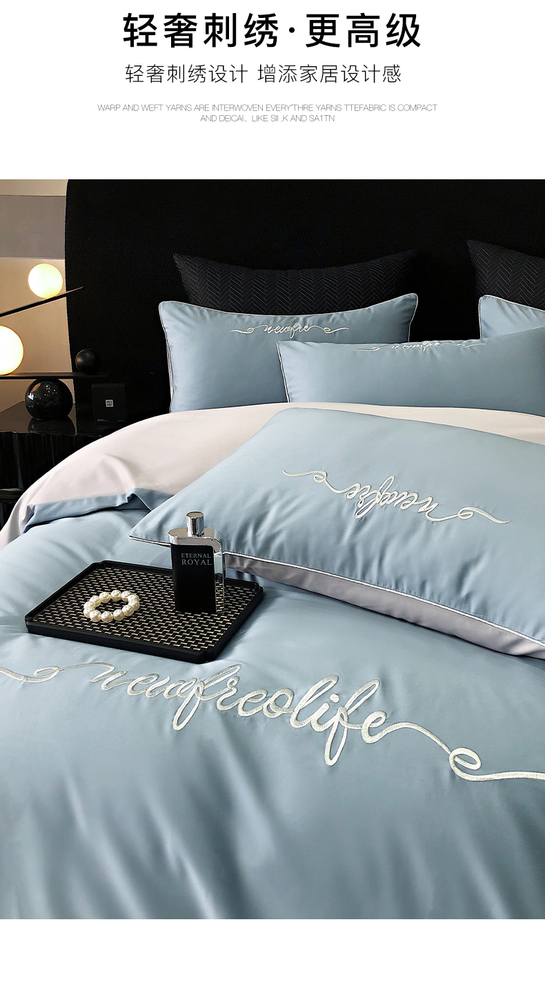 (总)禧澜庭 2024新款高支纯棉全棉斜纹四件套刺绣绣花款轻奢三件套,布鲁灰,戴妃粉,戴妃粉+魅紫,皓月白+卡其,皓月白+柔粉,魅力蓝,魅力蓝+浅灰,莺茶绿+卡其,月光灰,珠光紫