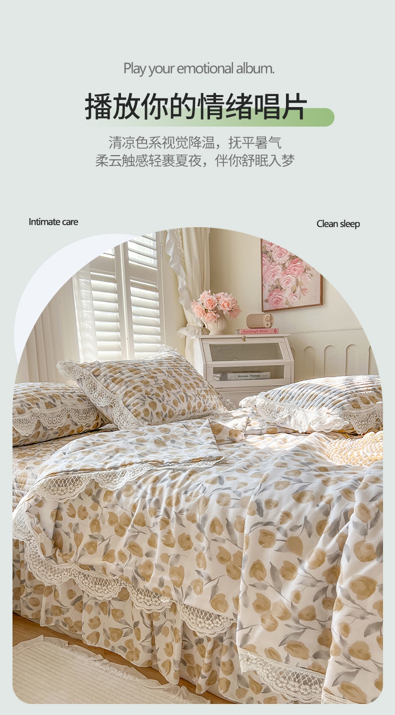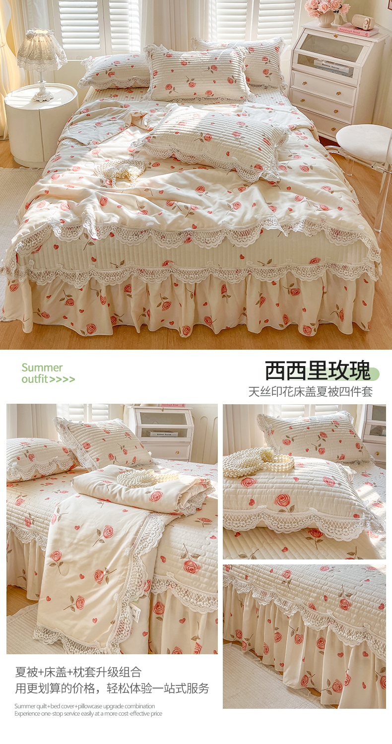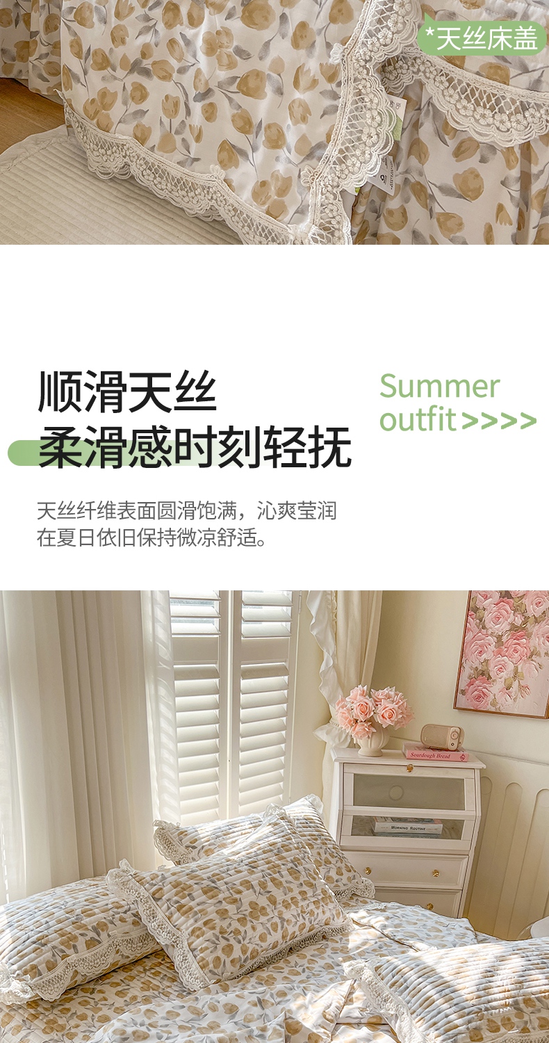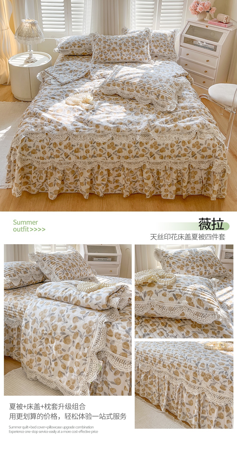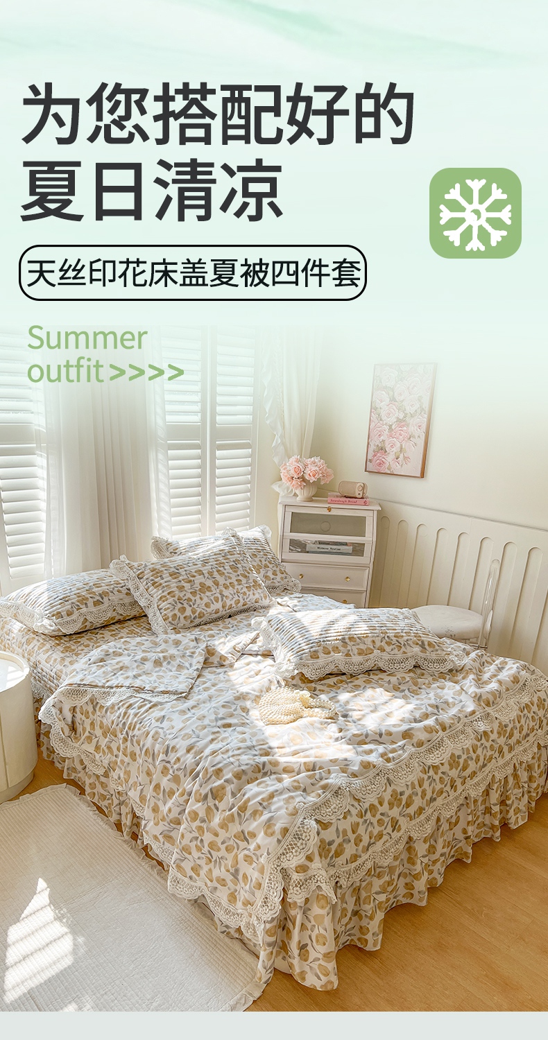 当前位置: 91家纺网 > 商品网购 > 床品套件 > 四件套 > 夏被四件套 > 网红馆(ck家纺) 2025新款天丝印花夹棉床盖夏被四件套 薇拉