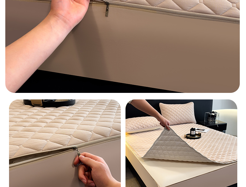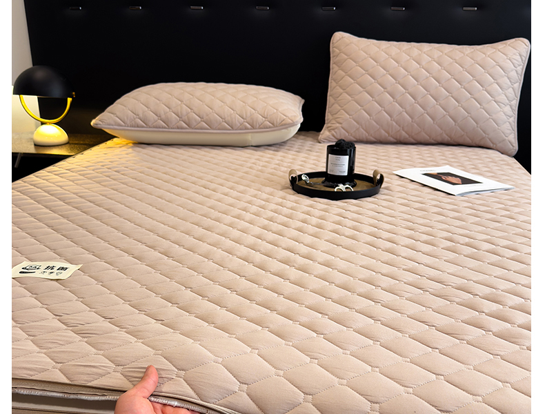 • 91家纺网 家纺一手货源 找家纺 叠派家纺 2025新款5A抗菌A类夹棉床笠经典款防水款系列 奶昔驼-小格子经典款