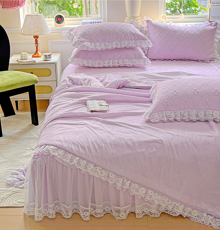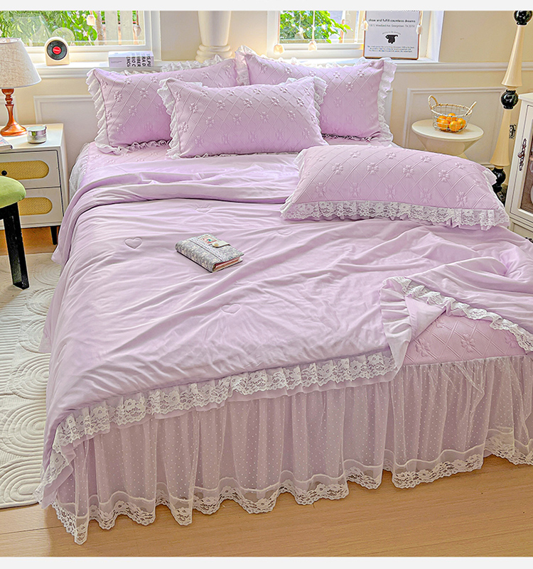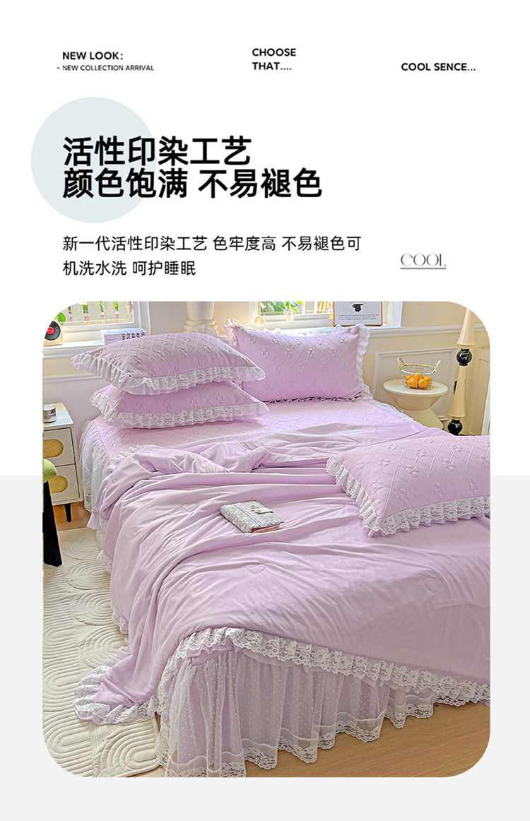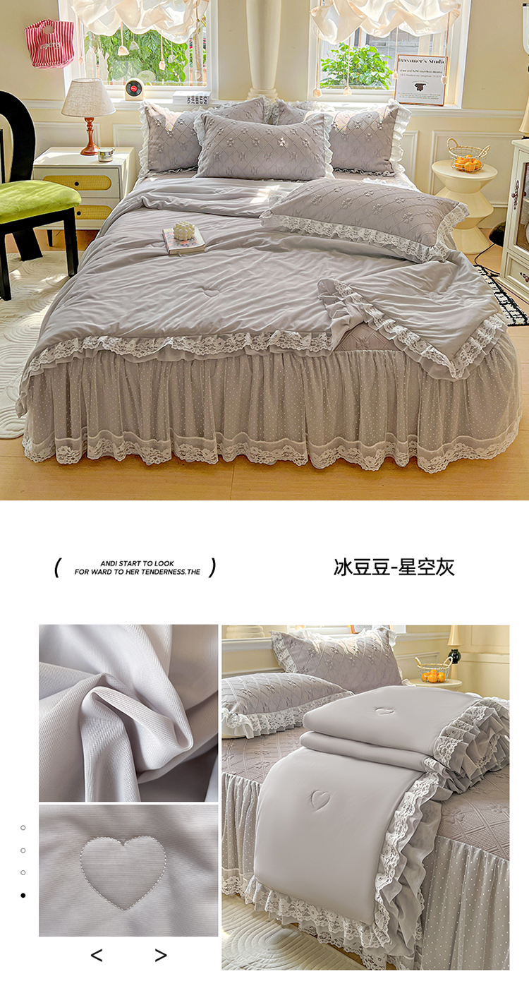 商品名称:(总)2025 新款3D提花冰豆豆凉席韩版花边床裙款夏被四件套