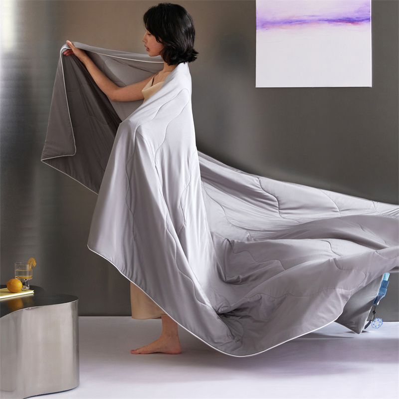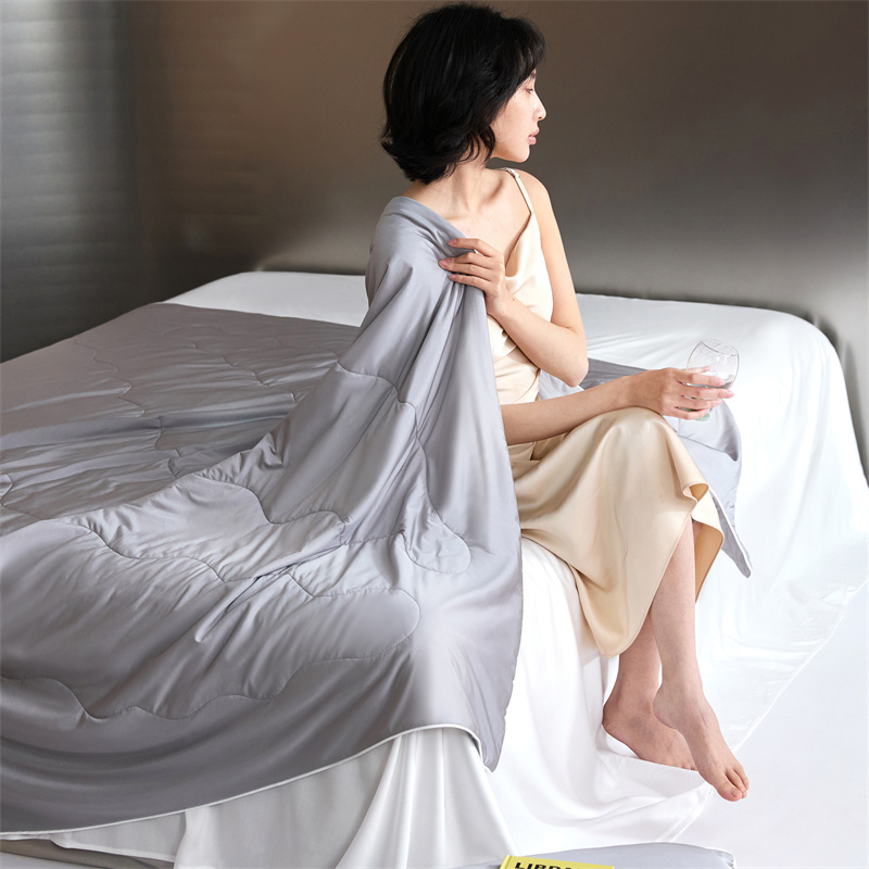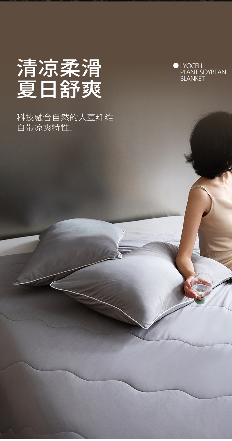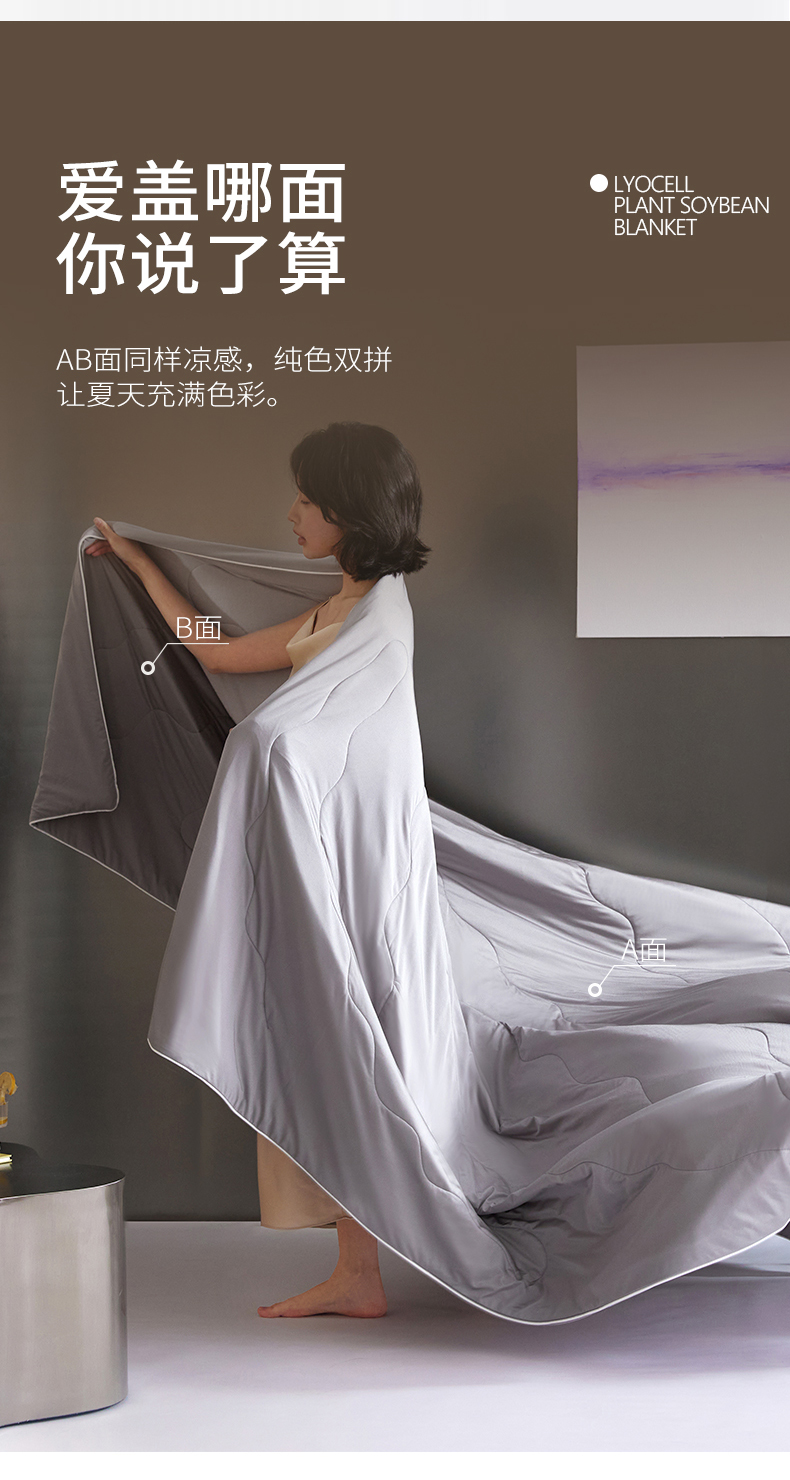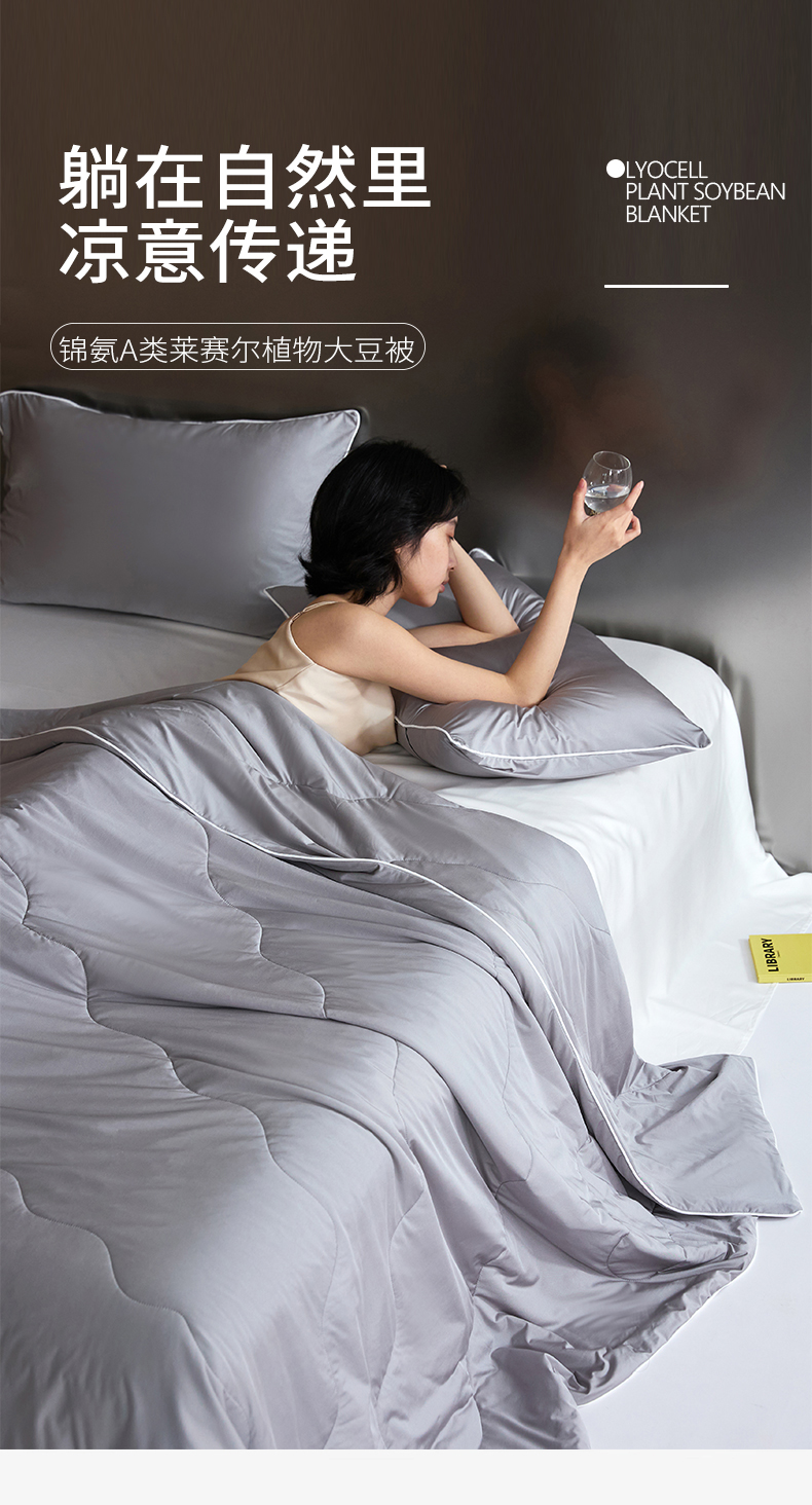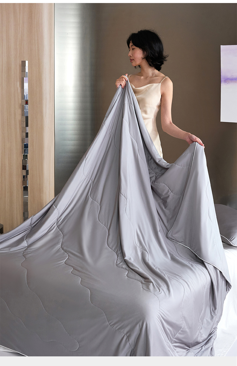 被子 > 夏被 > 头等舱 2025新款锦氨(165克)水光亮面锦A类55莱赛尔植物大豆7A抗菌夏凉被夏被(模特图) 幻影灰