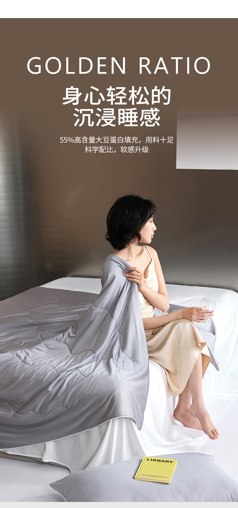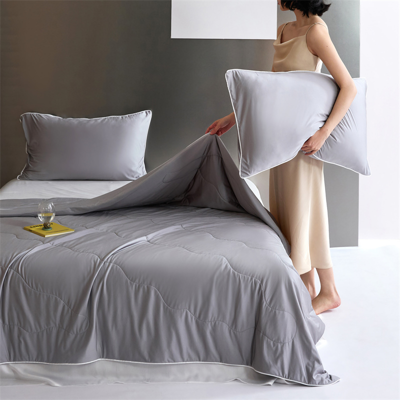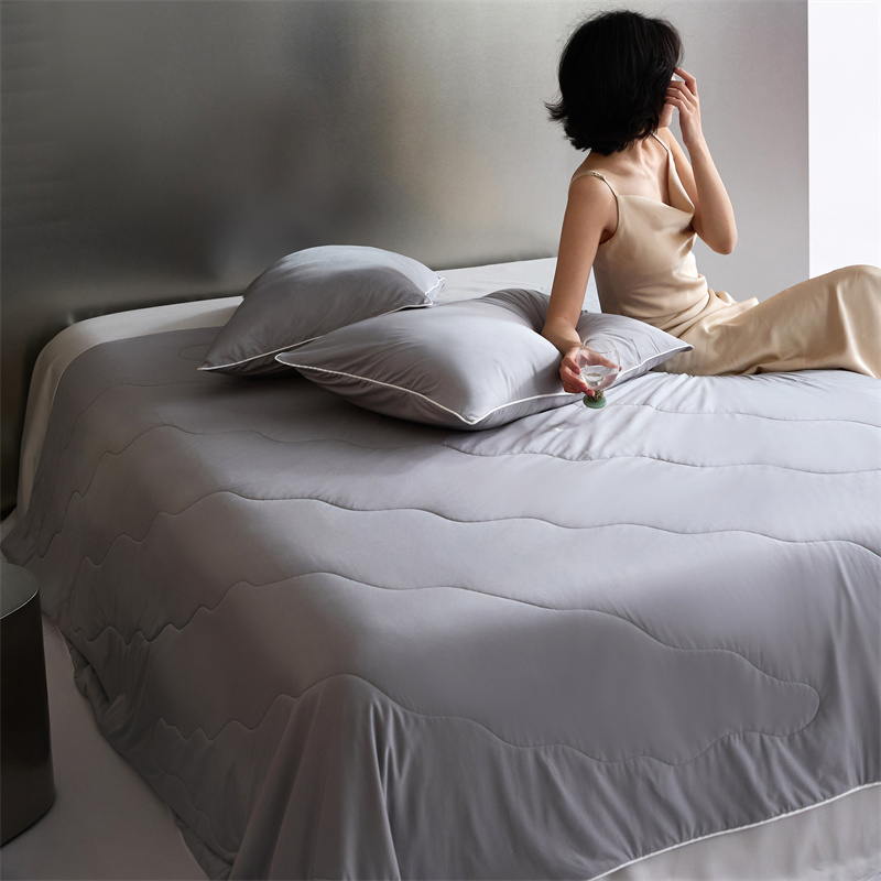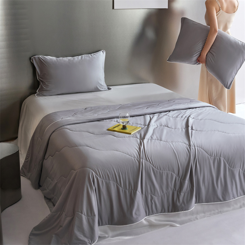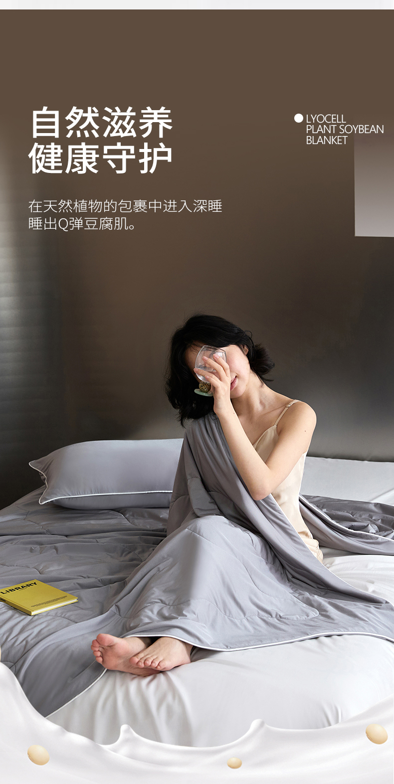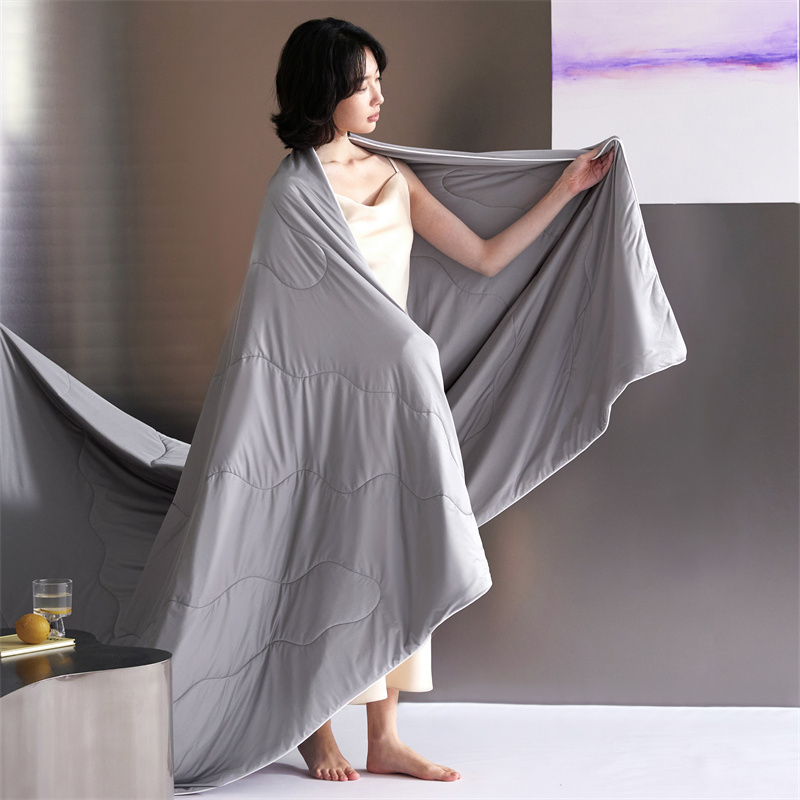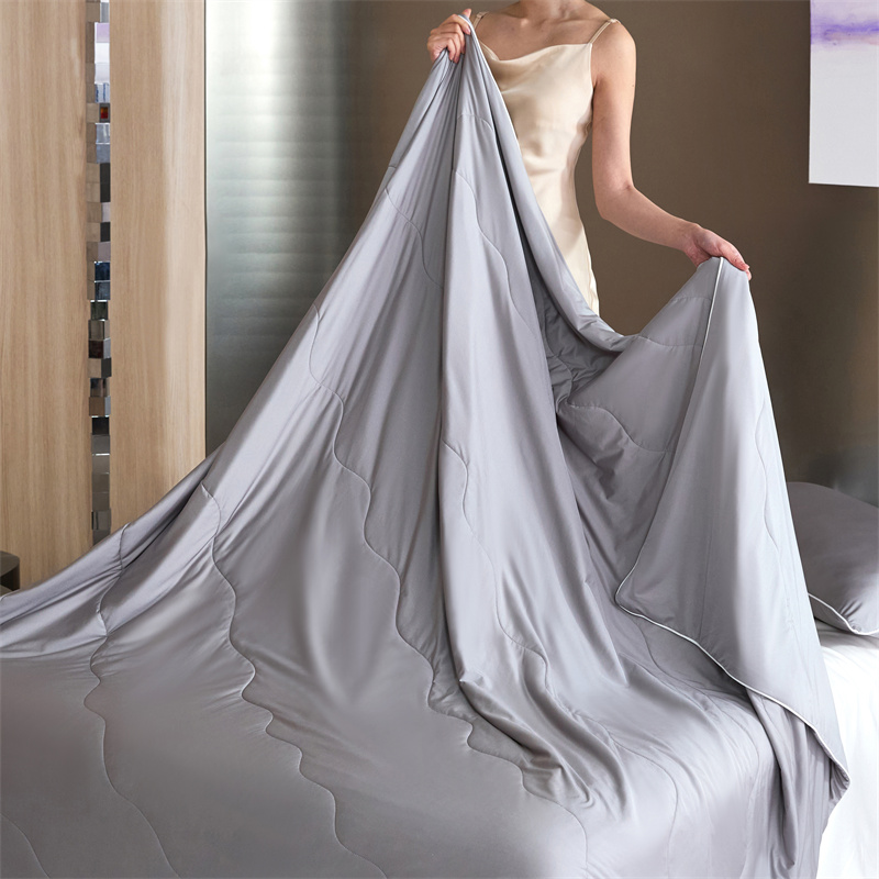 被子 > 夏被 > 头等舱 2025新款锦氨(165克)水光亮面锦A类55莱赛尔植物大豆7A抗菌夏凉被夏被(模特图) 幻影灰