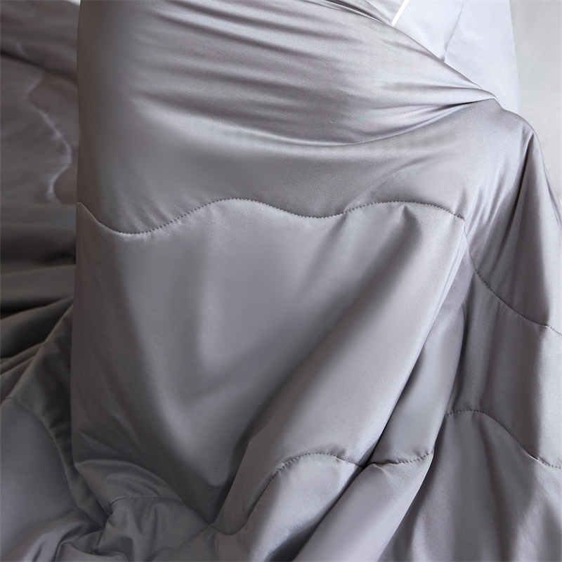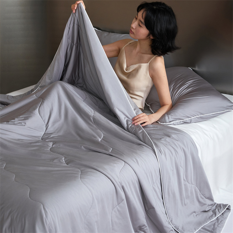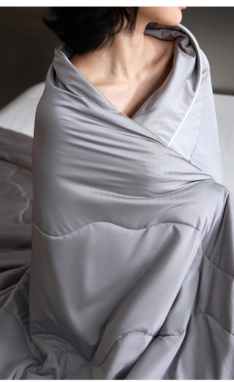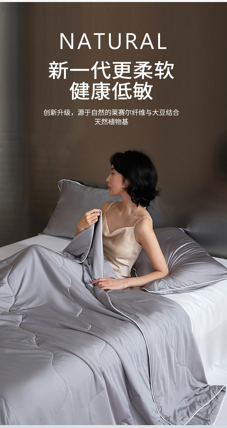 商品名称:头等舱 2025新款锦氨(165克)水光亮面锦A类55莱赛尔植物大豆7A抗菌夏凉被夏被(模特图) 幻影灰