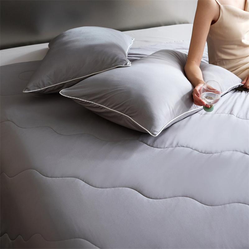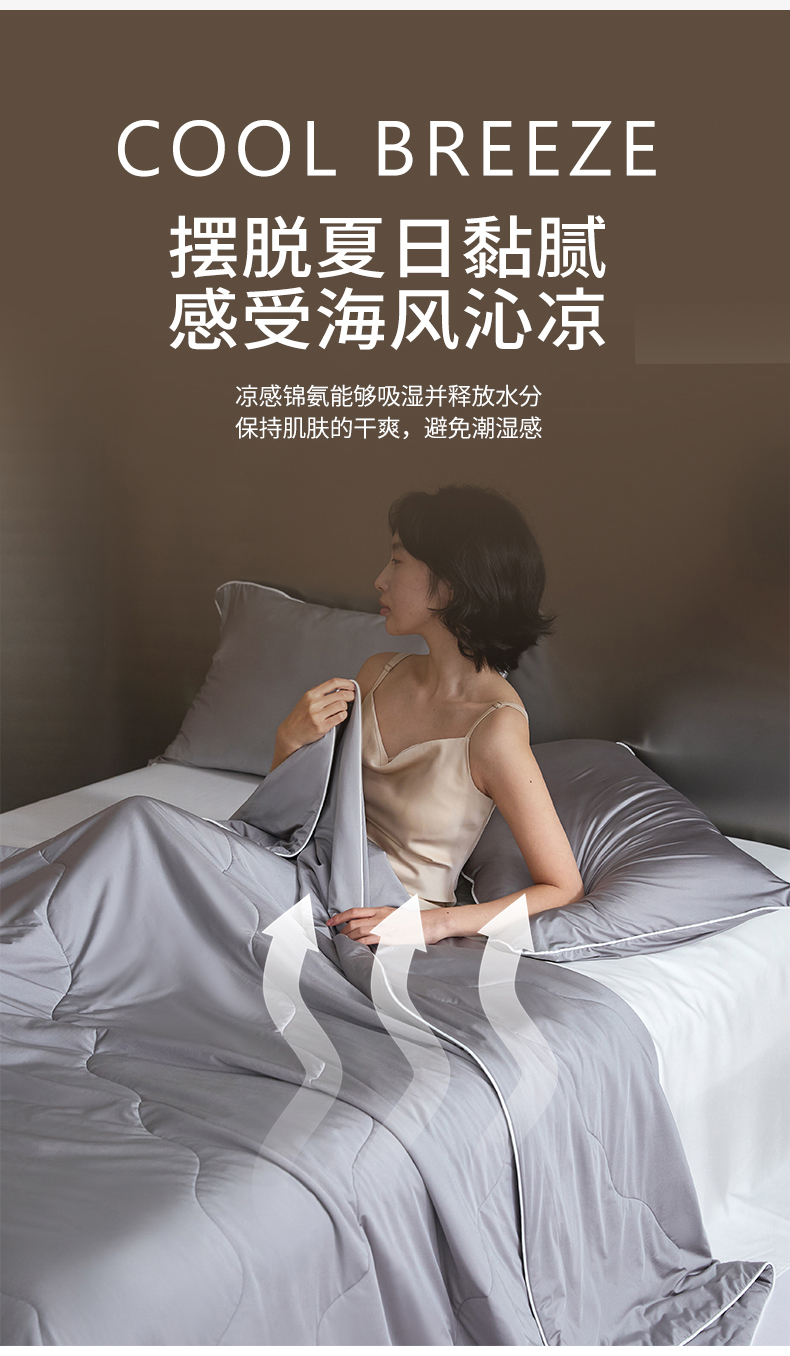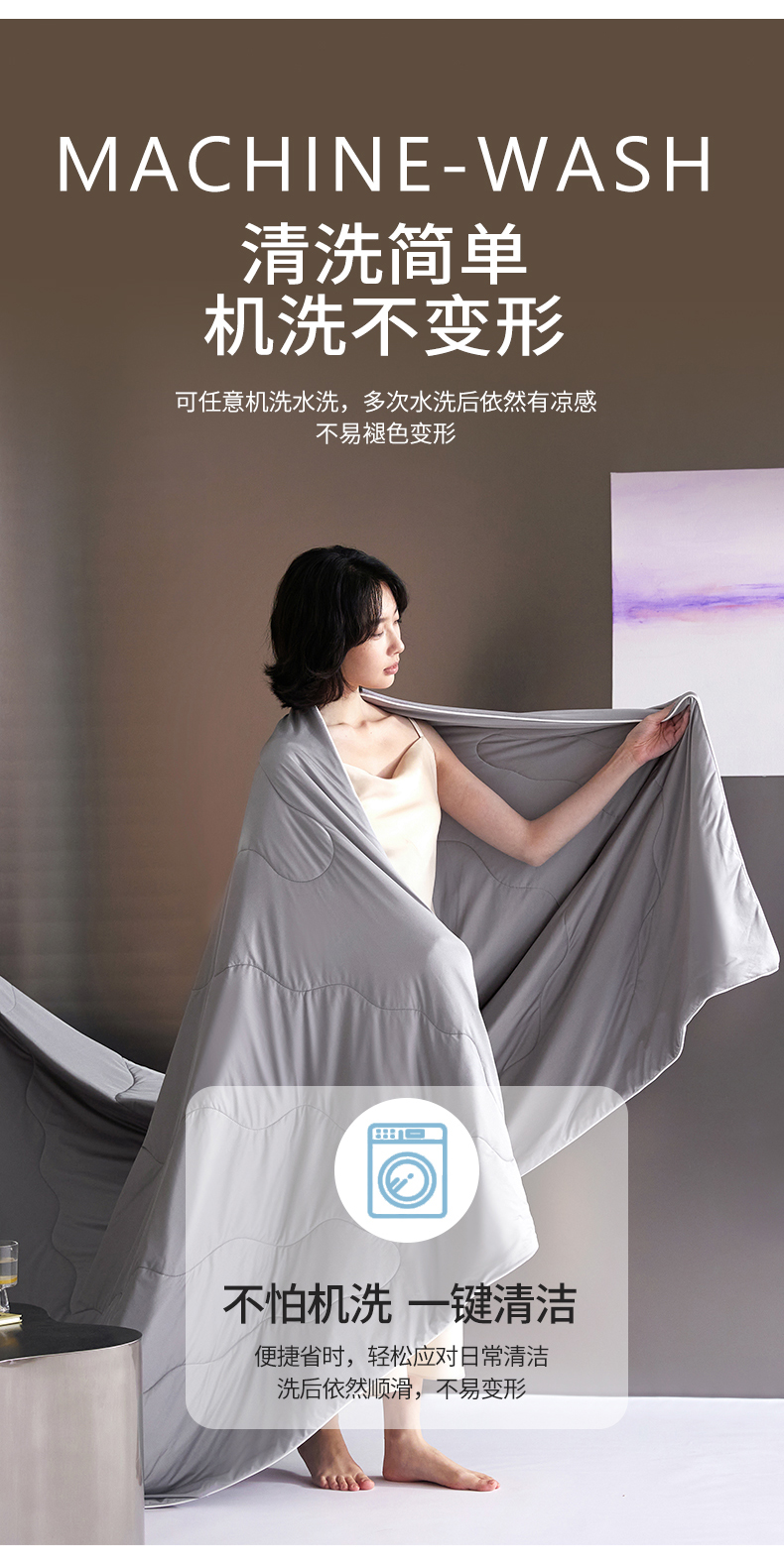 商品名称:头等舱 2025新款锦氨(165克)水光亮面锦A类55莱赛尔植物大豆7A抗菌夏凉被夏被(模特图) 幻影灰