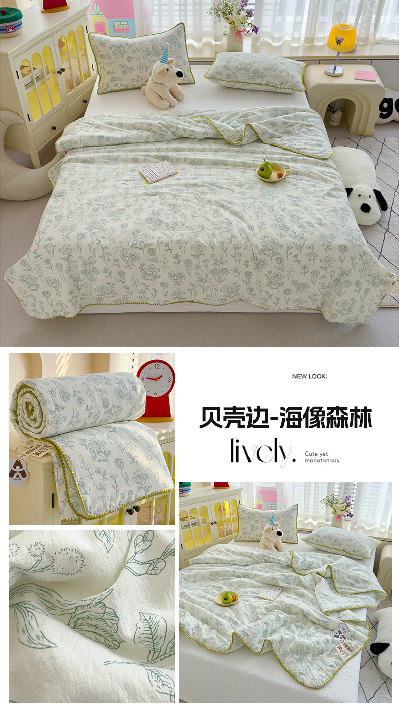 商品名称:贝扬思 2025新款云感双层纱抗菌贝壳边夏被 组合(仅参考)
