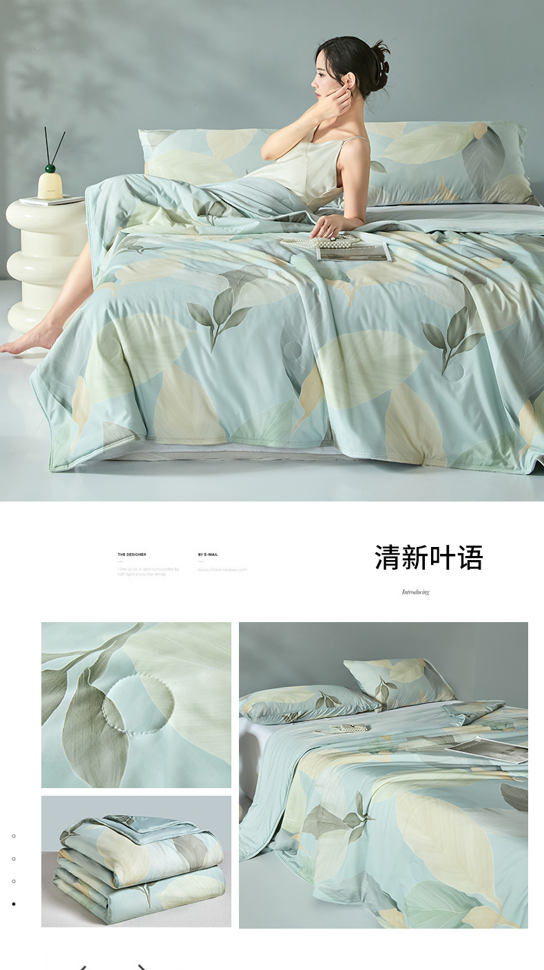 2025春夏新款100%双面锦纶美式印花夏被凉感空调被 清新叶语