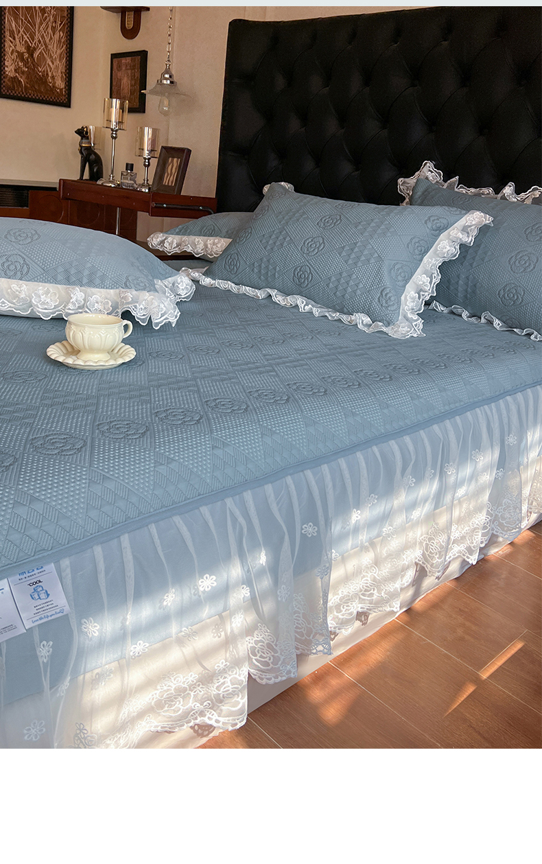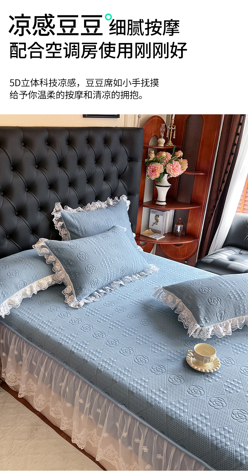 商品名称:麒豆豆 2025新款床笠式床裙豆豆凉席-瑞莎 瑞莎烟雾蓝