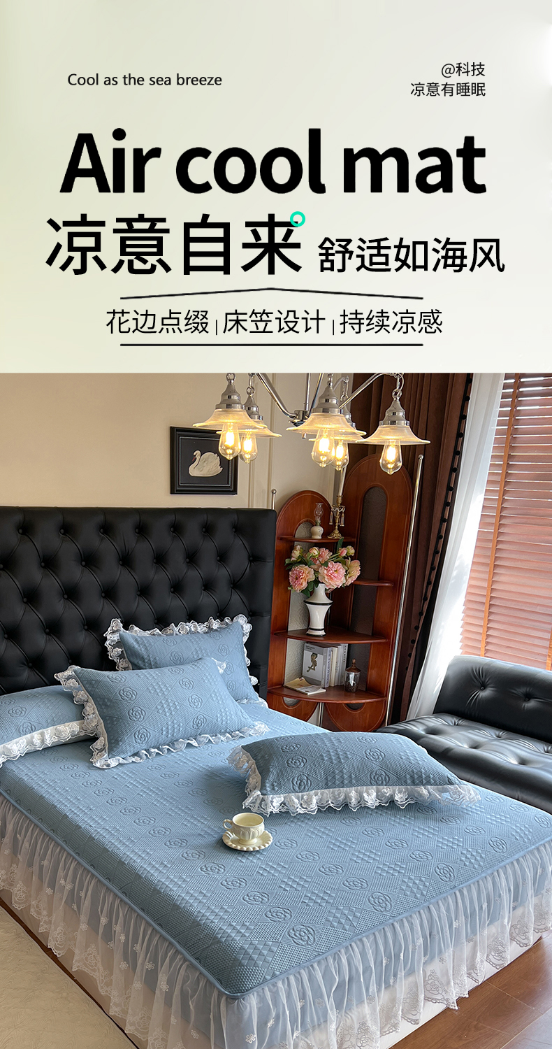 麒豆豆 2025新款床笠式床裙豆豆凉席-瑞莎 瑞莎烟雾蓝