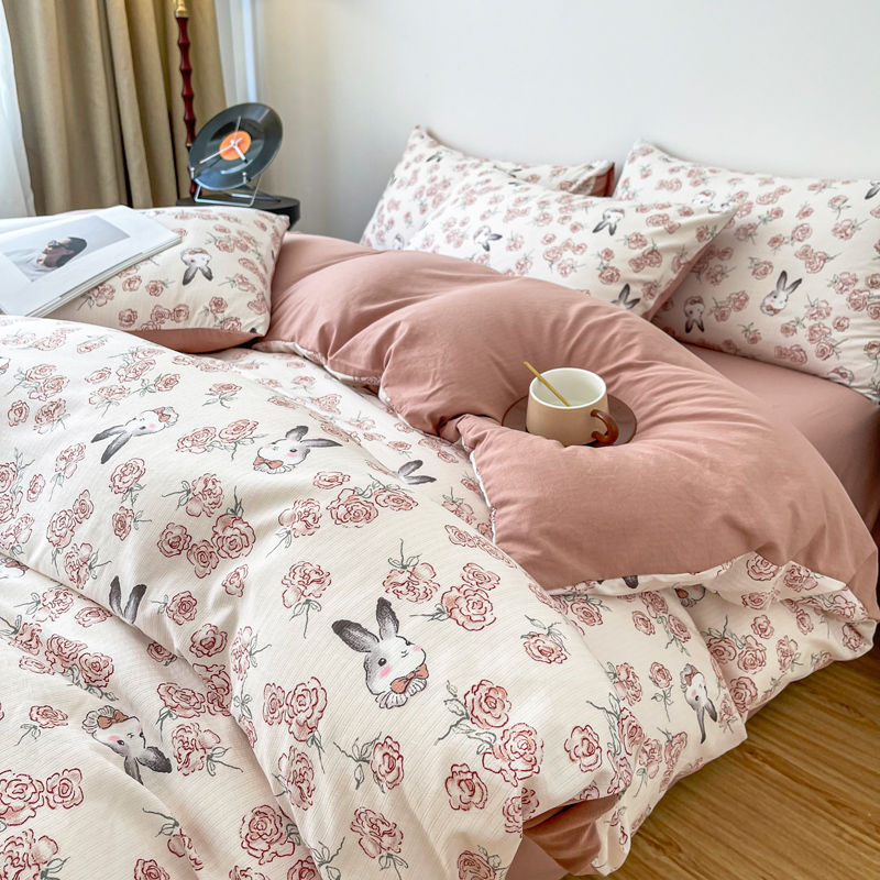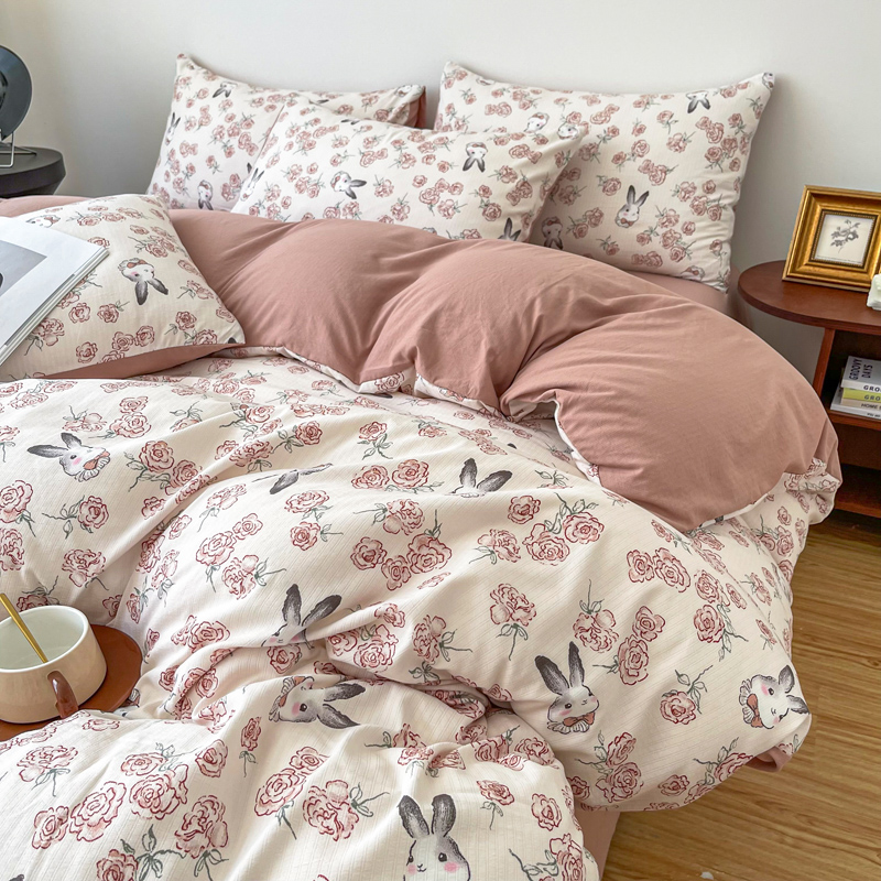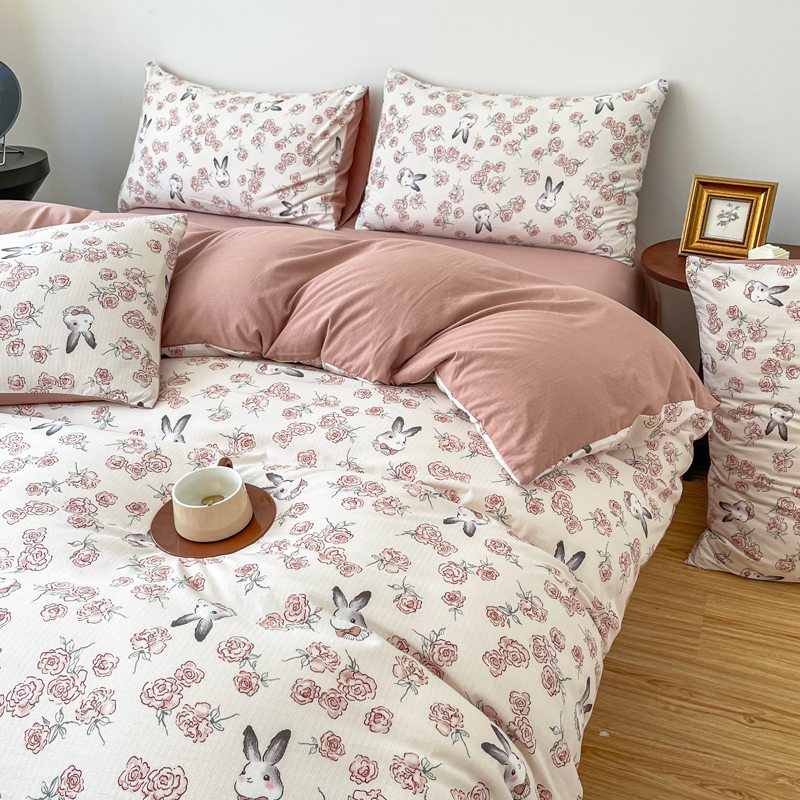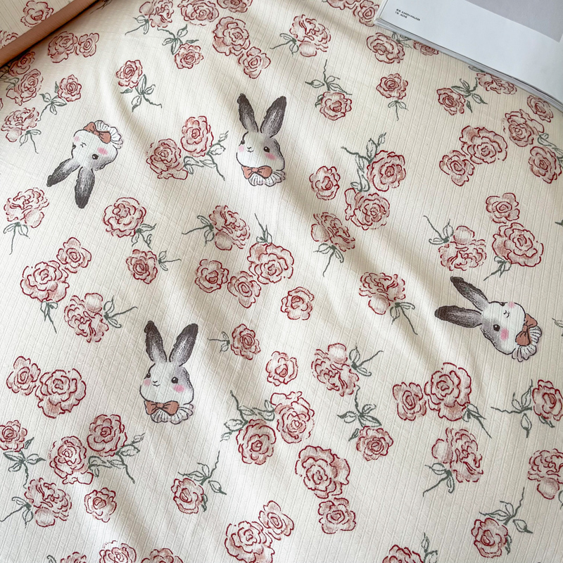 商品名称:仟网汇 2025新款亲肤舒适提花小竺棉彩竹棉彩竺棉系列四件套 彩竺棉-菲菲兔