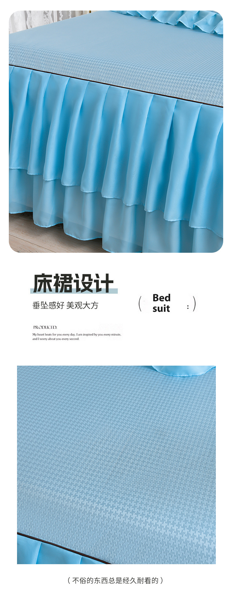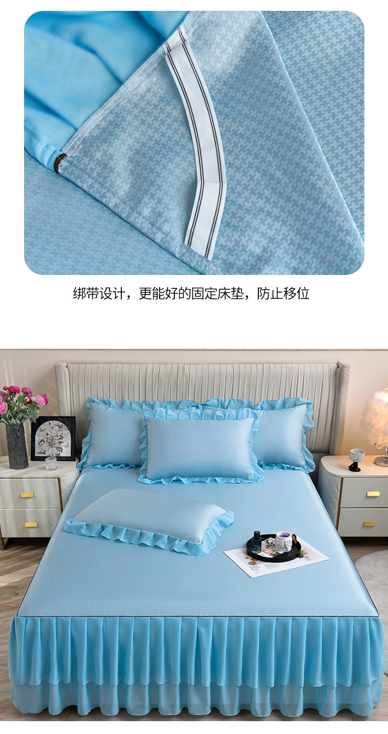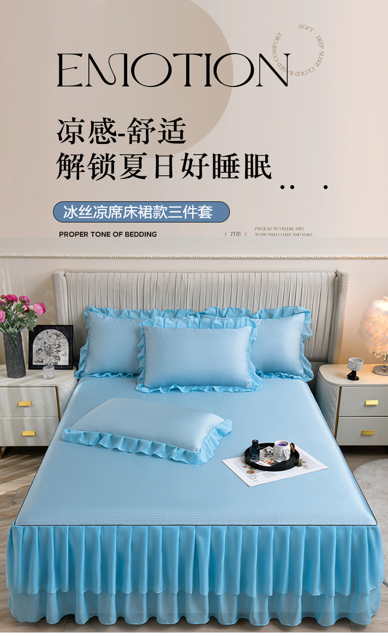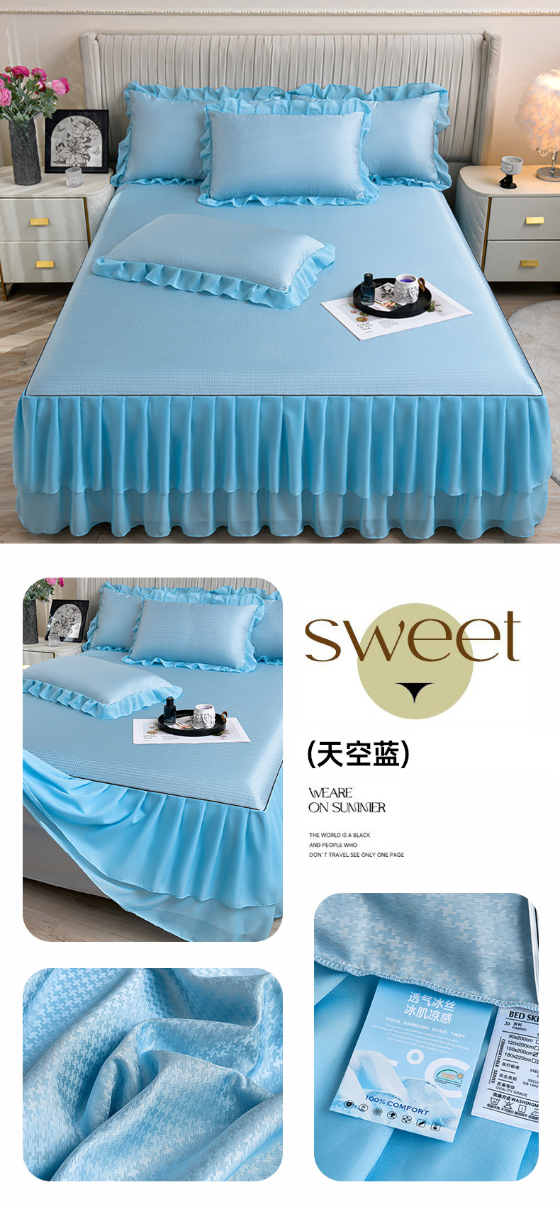 当前位置: 91家纺网 > 商品网购 > 床上用品 > 凉席 > 冰丝席 > 家之硕家纺 2025新款冰丝凉席床裙款三件套 天空蓝