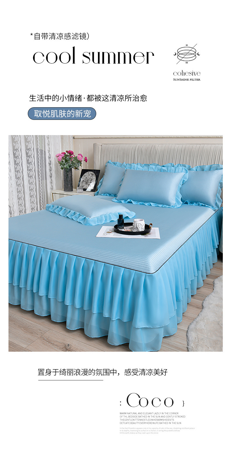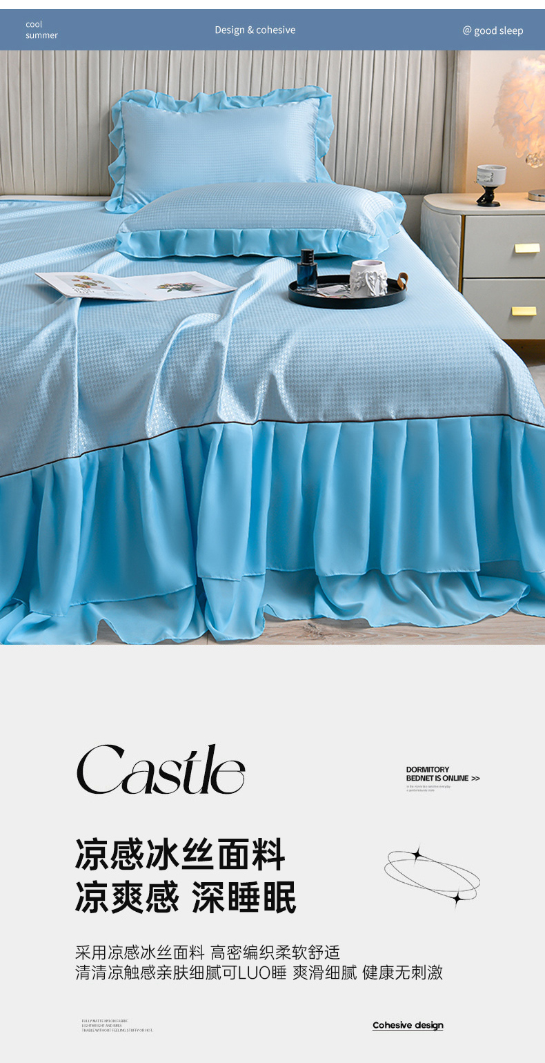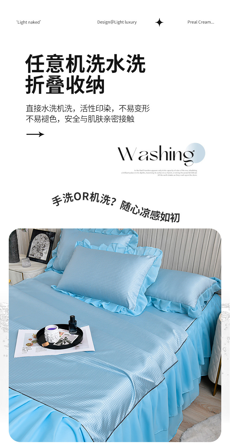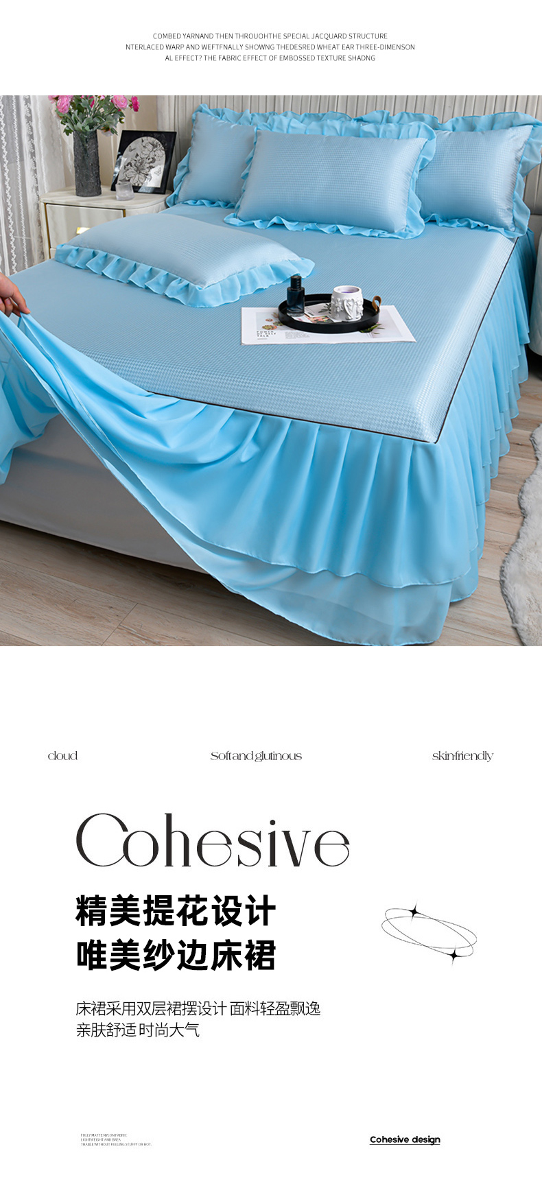 当前位置: 91家纺网 > 商品网购 > 床上用品 > 凉席 > 冰丝席 > 家之硕家纺 2025新款冰丝凉席床裙款三件套 天空蓝