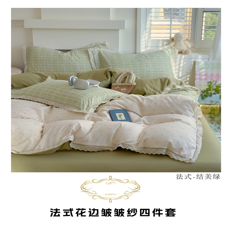 商品名称:竹合家纺 2025新款春日碎花法式镂空花边款式提花皱皱四件套 法式-结美绿