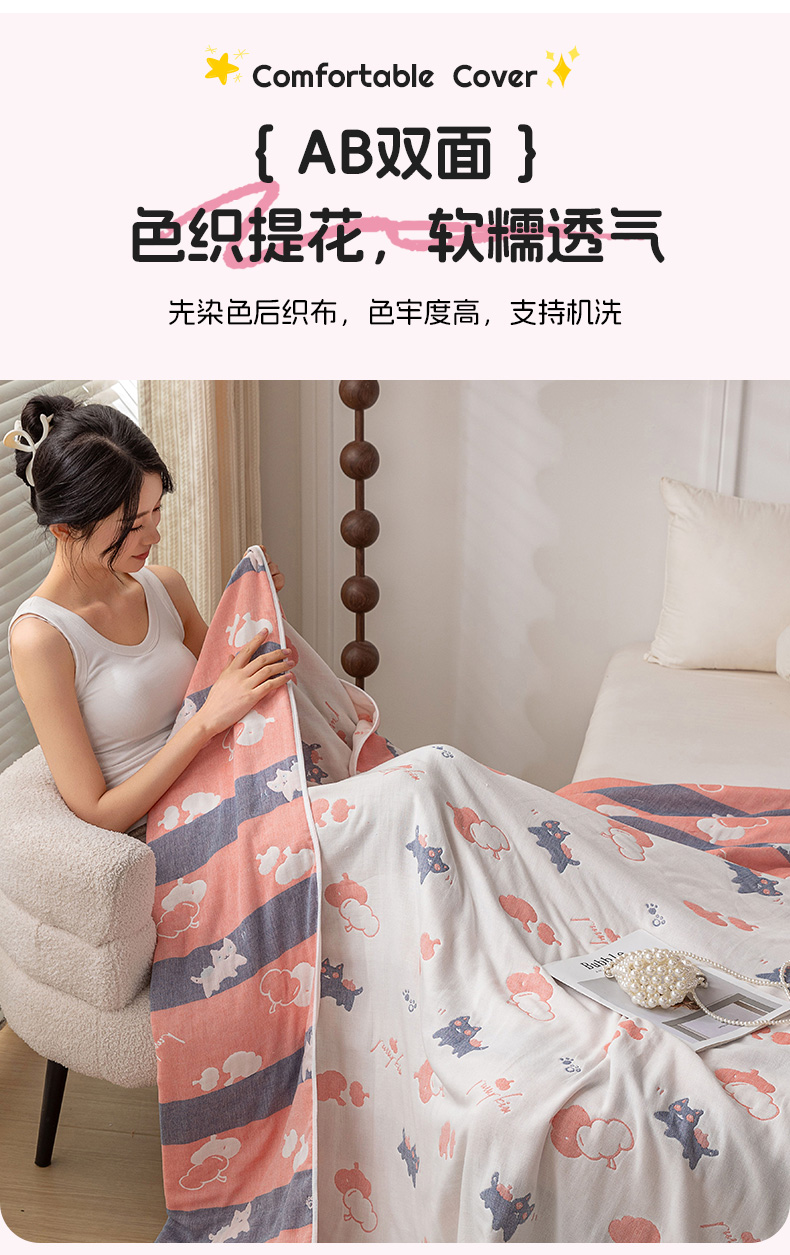 商品名称:乐家毛巾被(工厂自产自销) 2025春夏新款亲肤舒适六层纱布被 彩色好天气