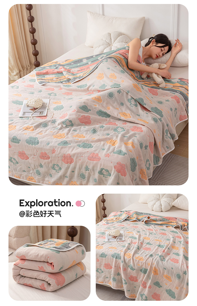 乐家毛巾被(工厂自产自销) 2025春夏新款亲肤舒适六层纱布被 彩色好天气