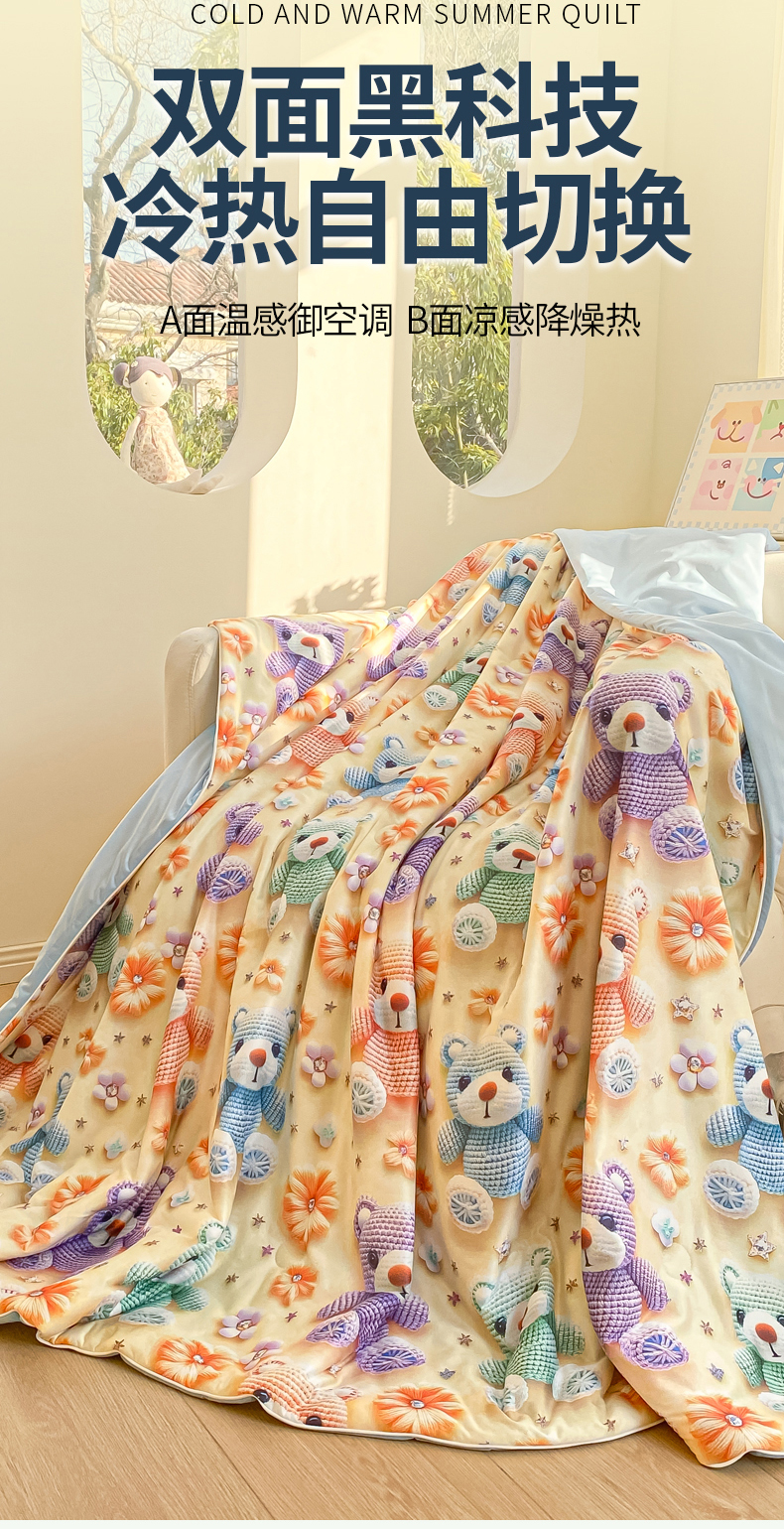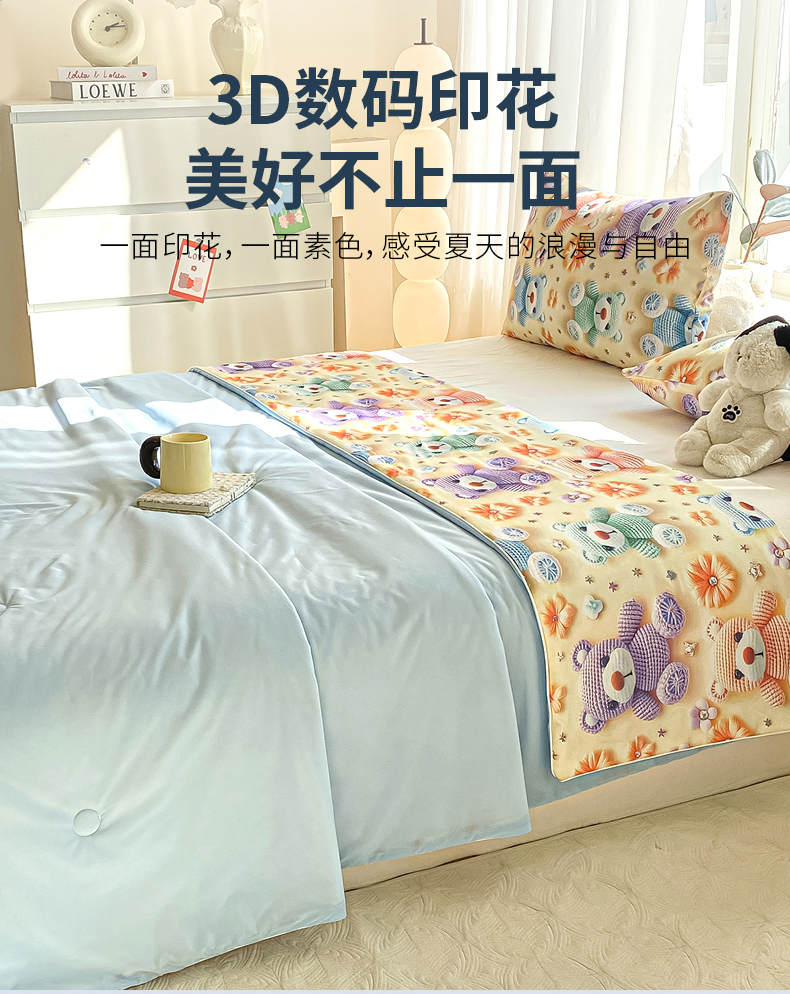 鸣升家纺 2025新款冷暖双感被大豆夏被3D数码凉感针织棉空调被夏凉被 毛线小熊