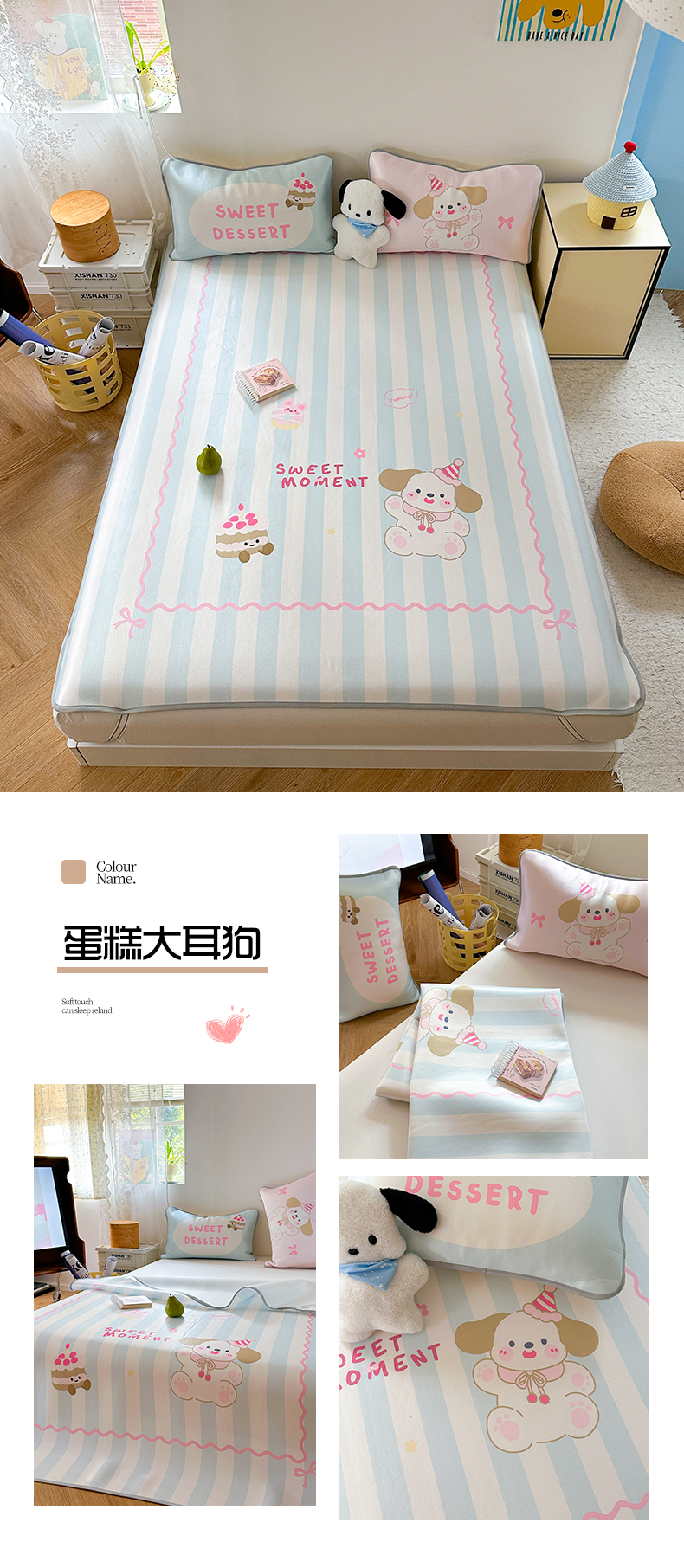 美乐迪家纺 2025新款碳光凉感冰丝席 蛋糕大耳狗
