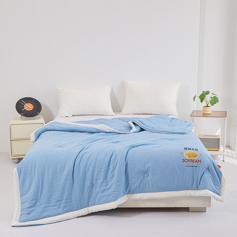 商品名称:伊梵居 2025新款高克重水洗棉原棉大豆被夏被 蓝色