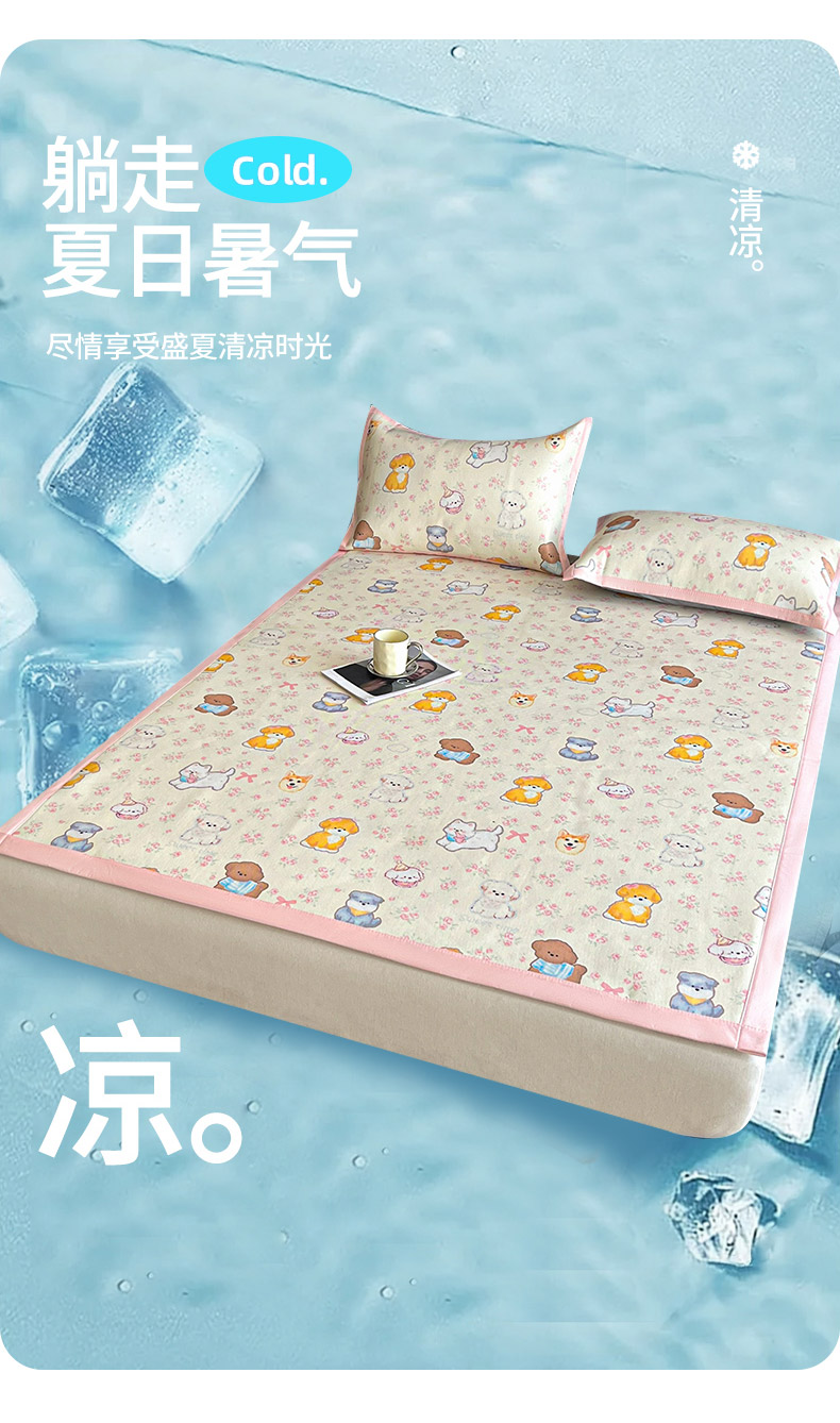 (总)久云居 2025新款凉感冰藤凉席三件套凉席席子,中古豹,大吉大利,动物乐园,放下焦绿,花样年华,快乐小狗,浪漫玫瑰,绿野仙踪,萌朵,梦幻城堡,牡丹韵,棋盘格,水墨江南,银灰蔓韵,粘豆包