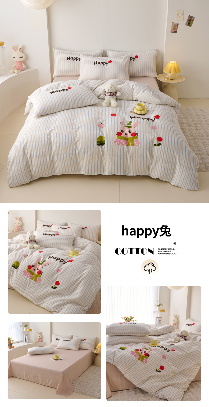 当前位置: 91家纺网 > 商品网购 > 床品套件 > 四件套 > 全棉普通四件套 > 爱思佳2025新款全棉双层纱毛巾绣系列四件套 happy兔