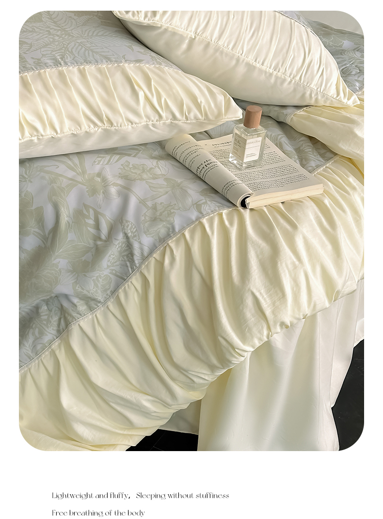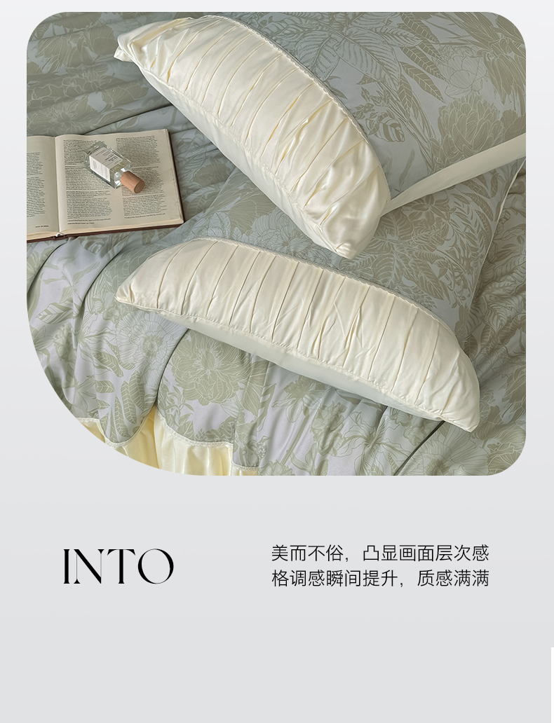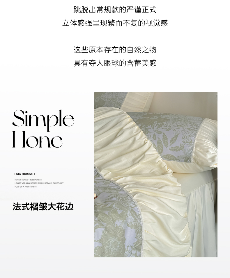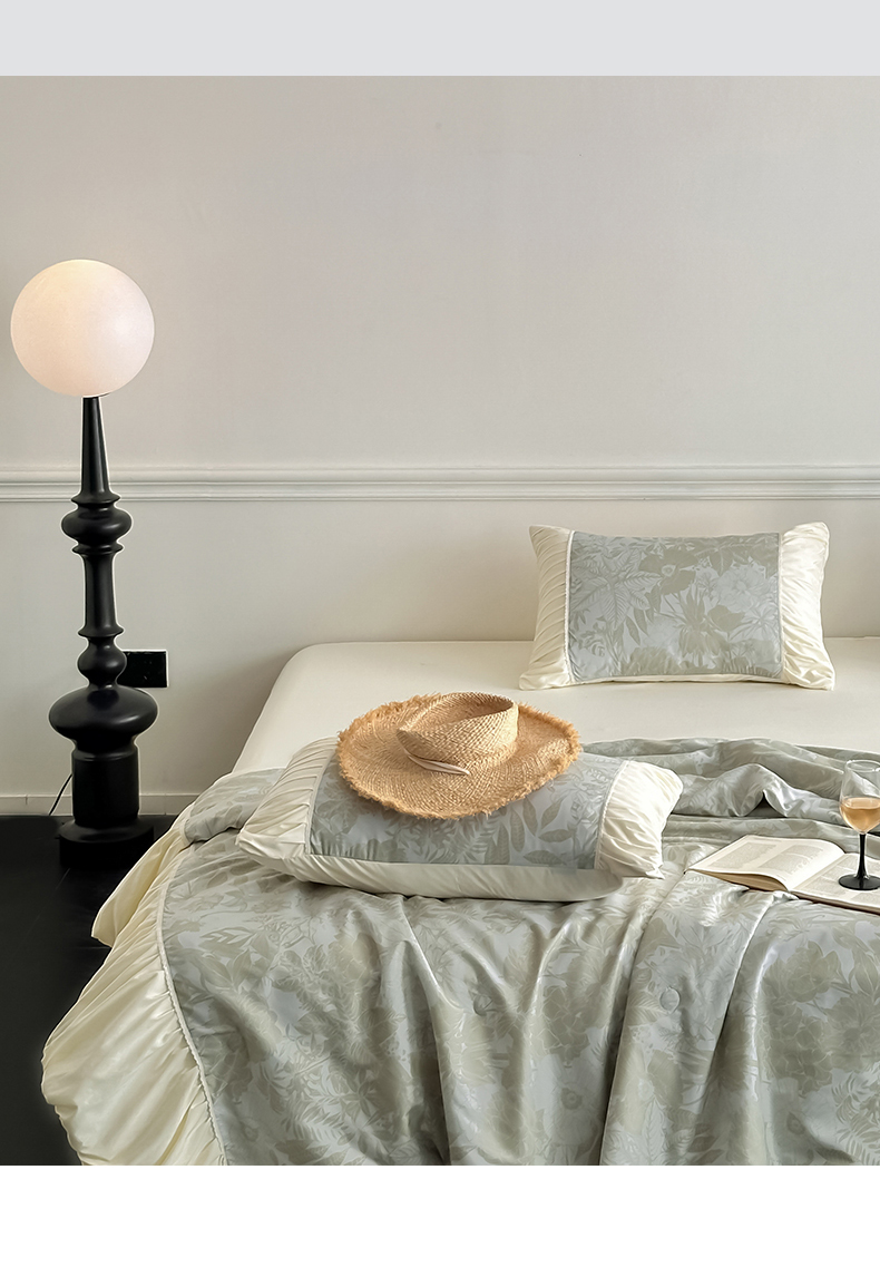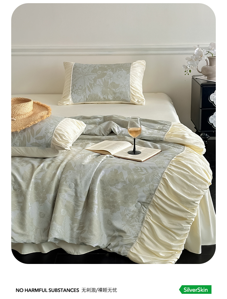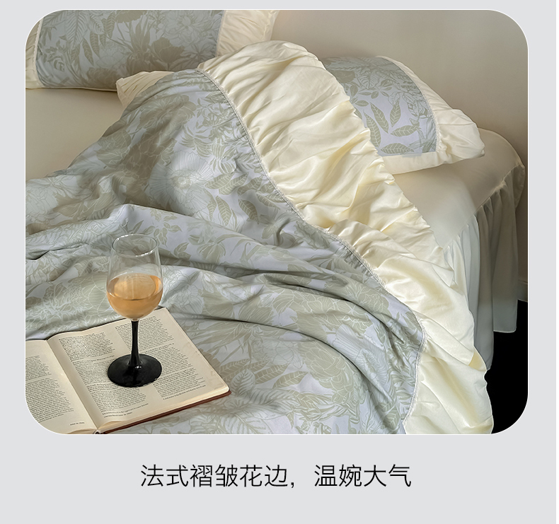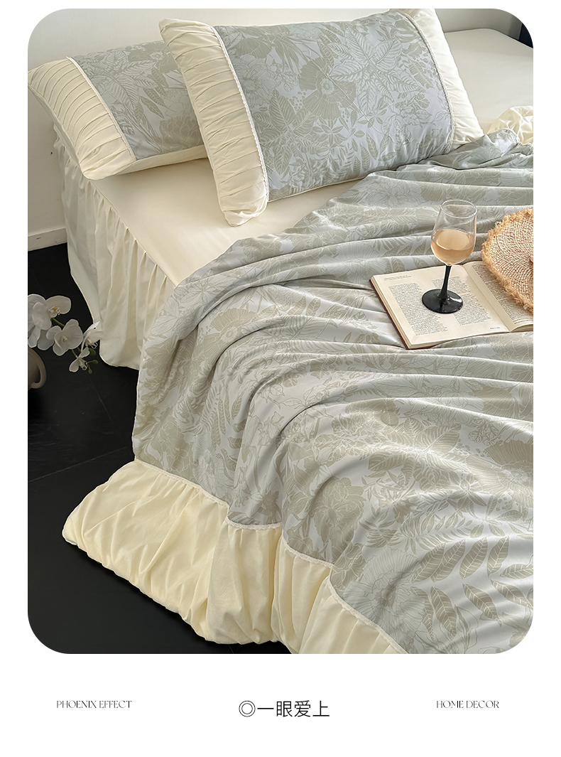 • 91家纺网 家纺一手货源 找家纺 一左一右  2025新款法式少女风数码印花褶皱花边亲肤棉夏凉被大豆被夏被四件套(提供买家秀) 绿
