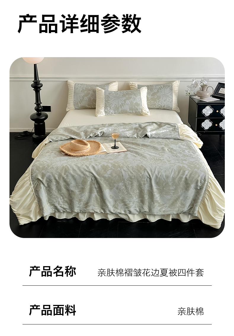 2.2米夏被1.8米床裙四件套(夏被220*240cm,床裙180*200cm(高度40cm)枕套48*74*2)