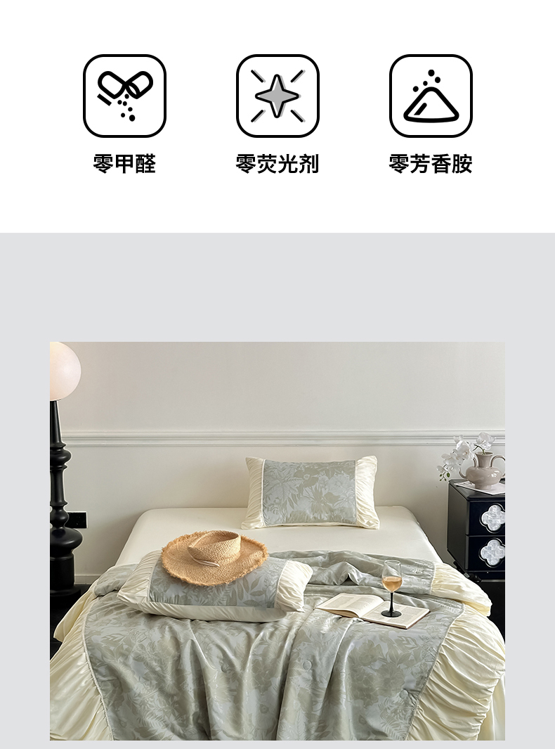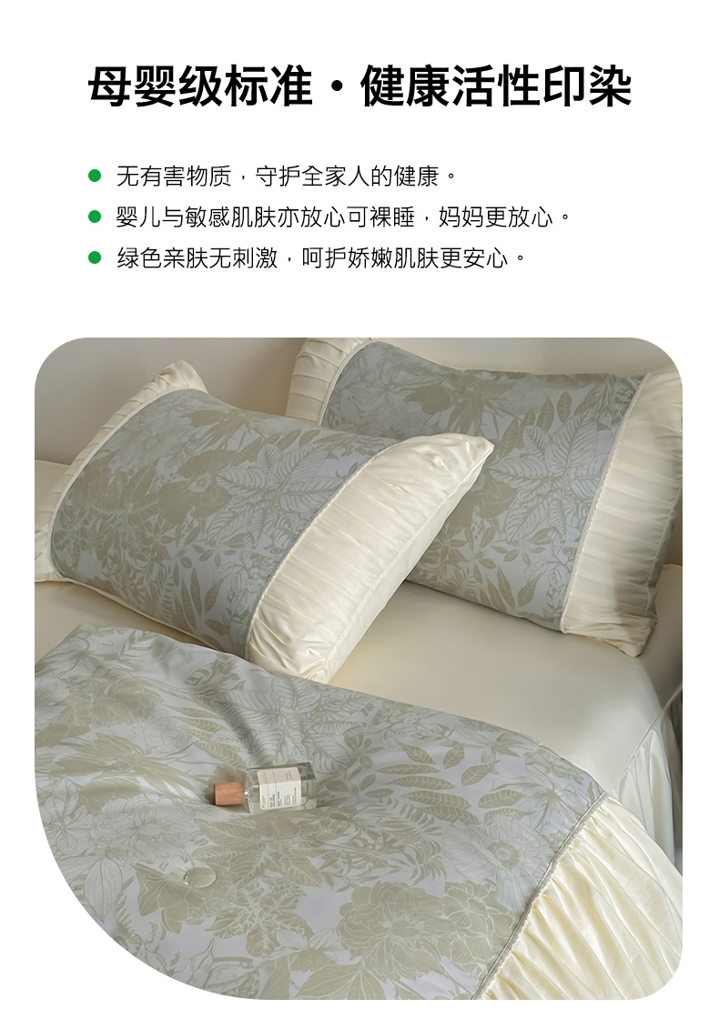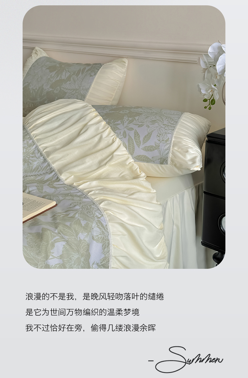 当前位置: 91家纺网 > 商品网购 > 被子 > 夏被 > 一左一右 2025新款法式少女风数码印花褶皱花边亲肤棉夏凉被大豆被夏被四件套(提供买家秀) 绿