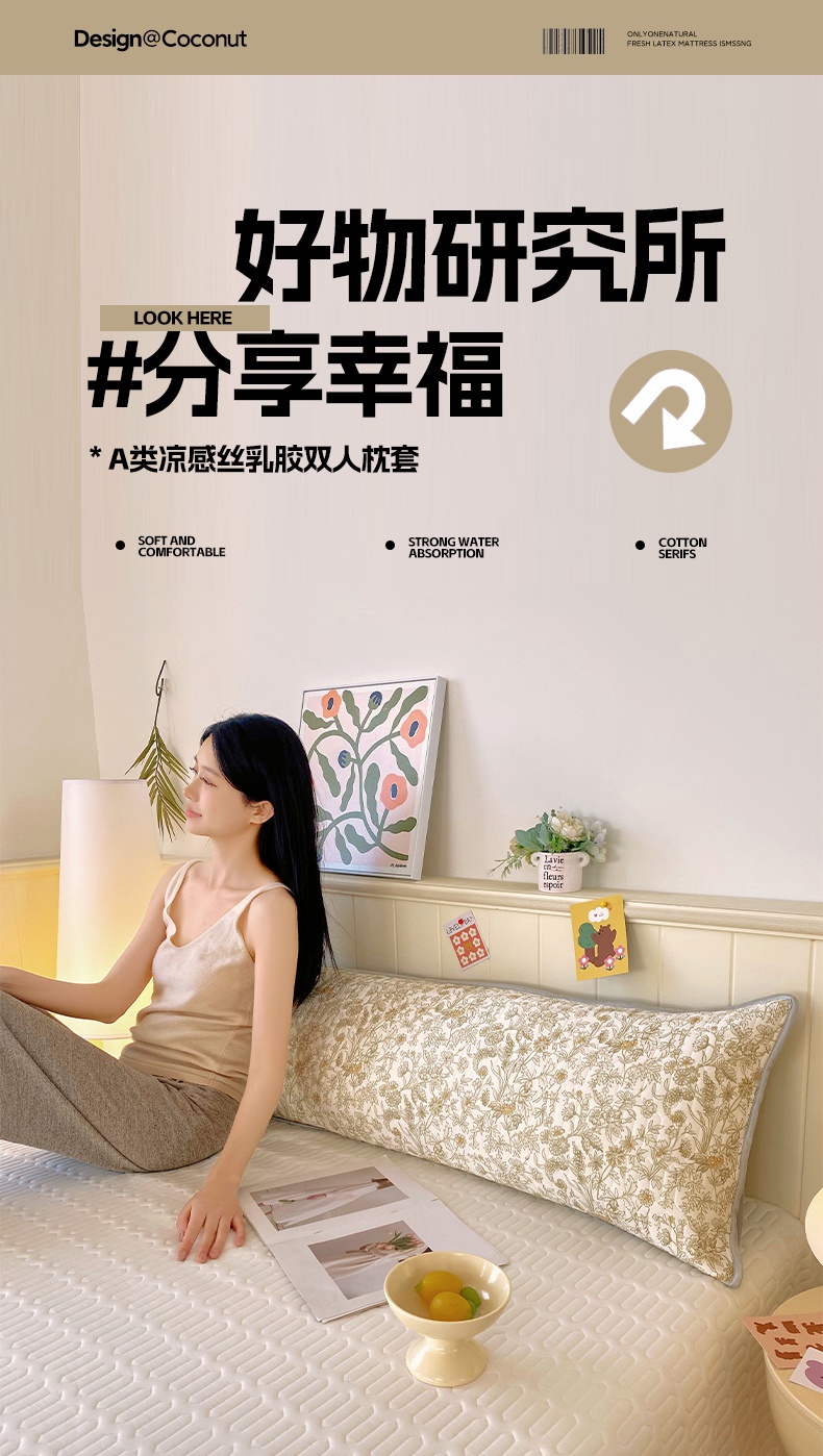 商品名称:雨彤家纺 2025年新款A类乳胶凉感丝双人长枕套 繁花似锦